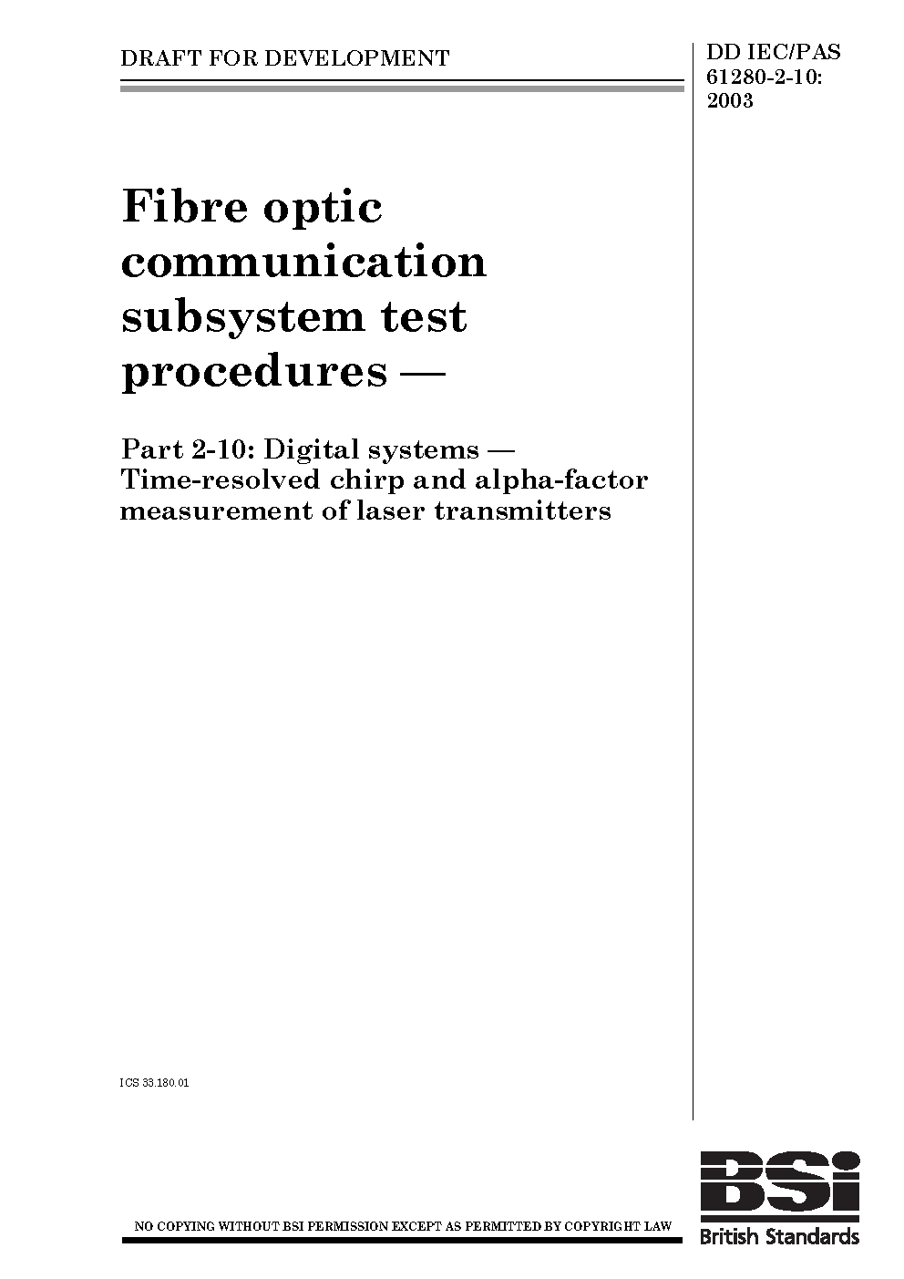 DD IEC/PAS 61280-2-10:2003