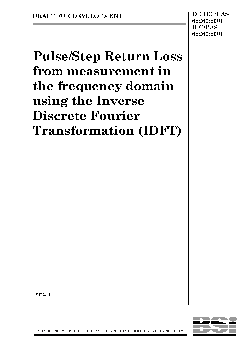 Pulse/step return loss from measurement in the frequency domain using the inverse discrete fourier transformation (IDFT)