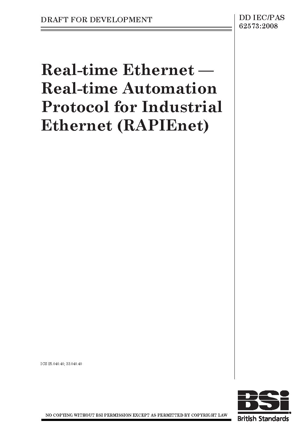 Real-time Ethernet. Real-time automation protocol for industrial Ethernet (RAPIEnet)