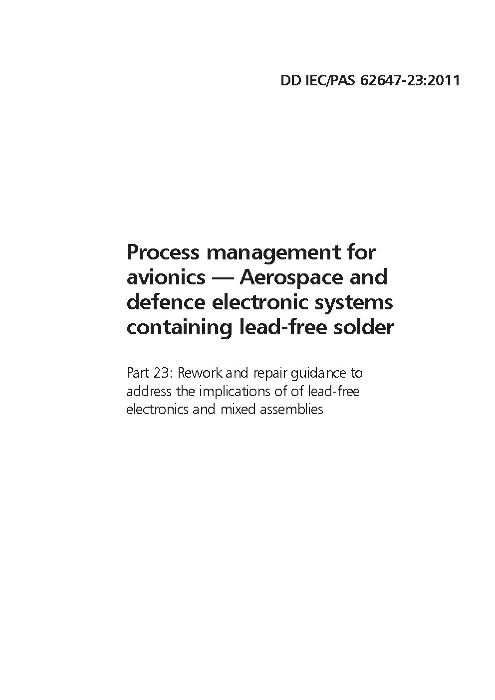 Process management for avionics. Aerospace and defence electronic systems containing lead-free solder Rework repair guidance to address the implications of electronics mixed assemblies