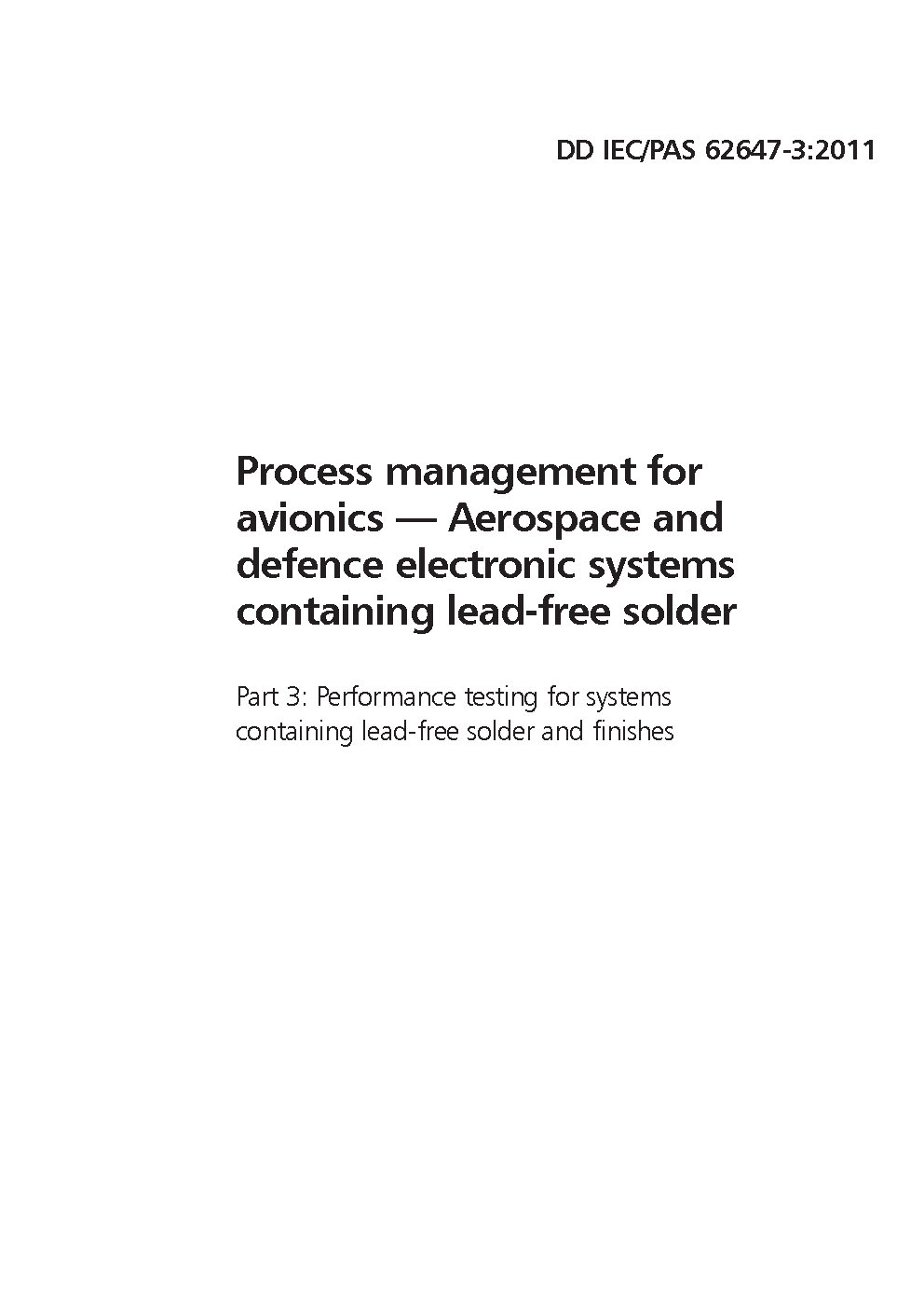 Process management for avionics. Aerospace and defence electronic systems containing lead-free solder Performance testing finishes