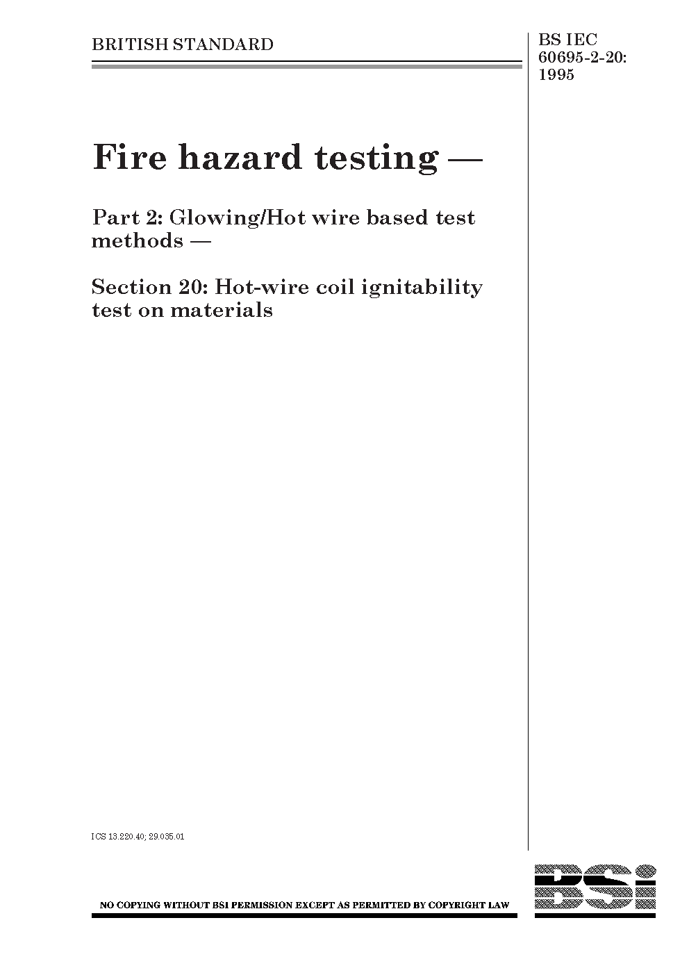 Fire hazard testing Glowing/hot wire based test methods Hot-wire coil ignitability. Apparatus, method and guidance