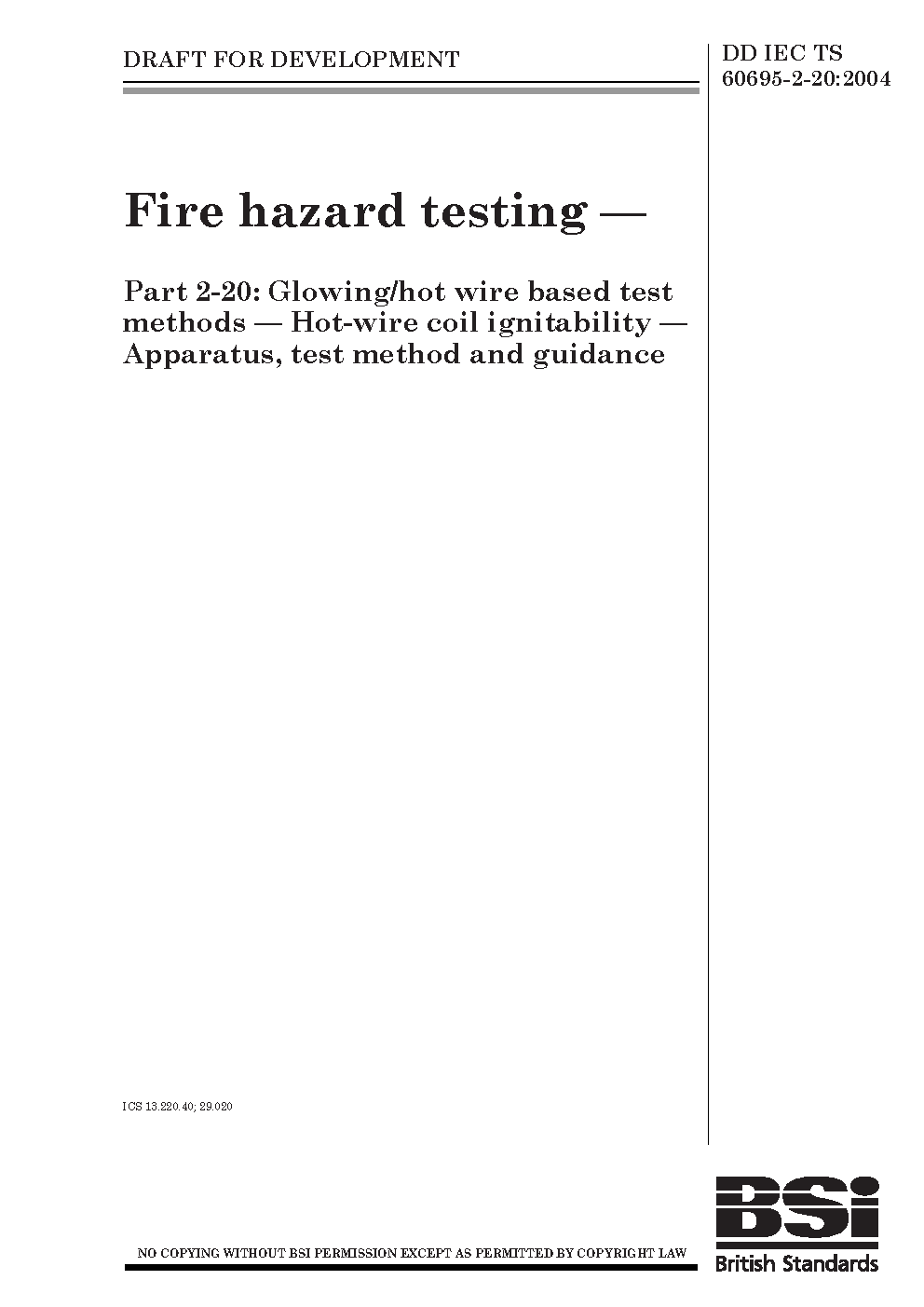 DD IEC/TS 60695-2-20:2004