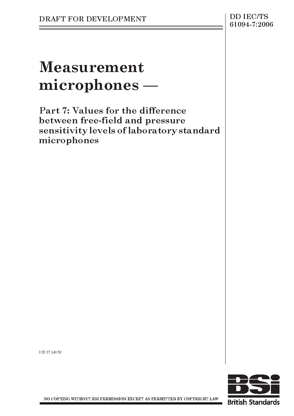 Measurement microphones Values for the difference between free-field and pressure sensitivity levels of laboratory standard