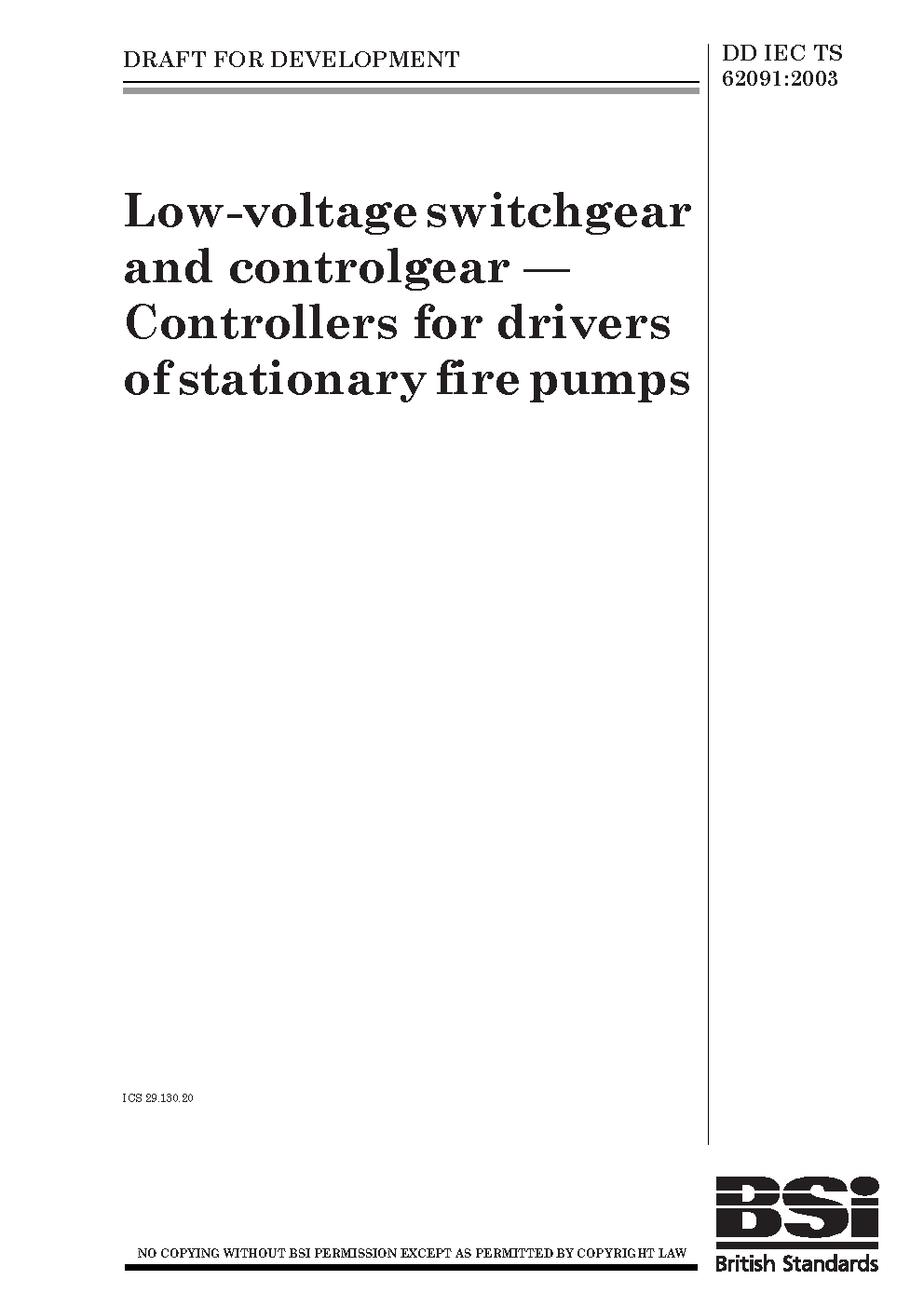 Low-voltage switchgear and controlgear. Controllers for drivers of stationary fire pumps