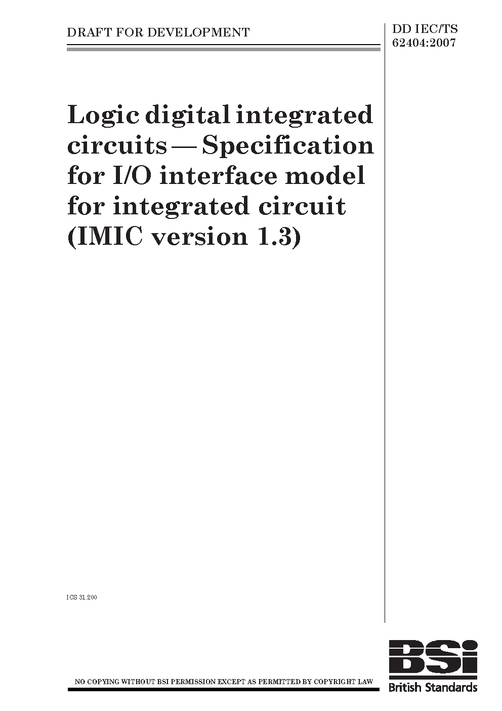 Logic digital integrated circuits. Specification for I/O interface model for integrated circuit (IMIC version 1.3)