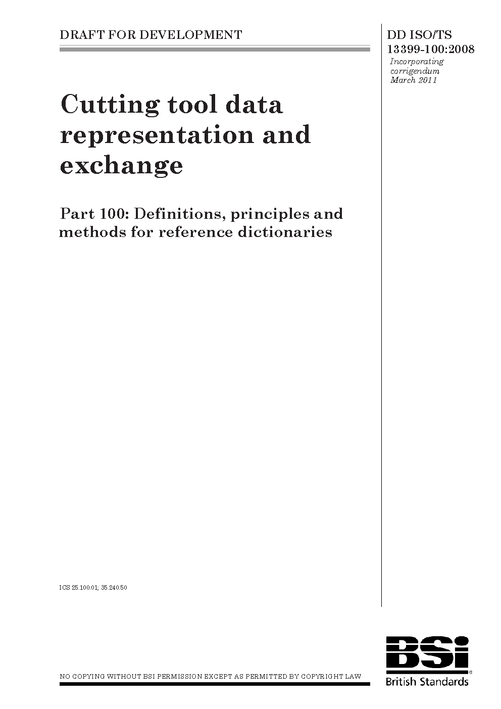 Cutting tool data representation and exchange Definitions, principles methods for reference dictionaries
