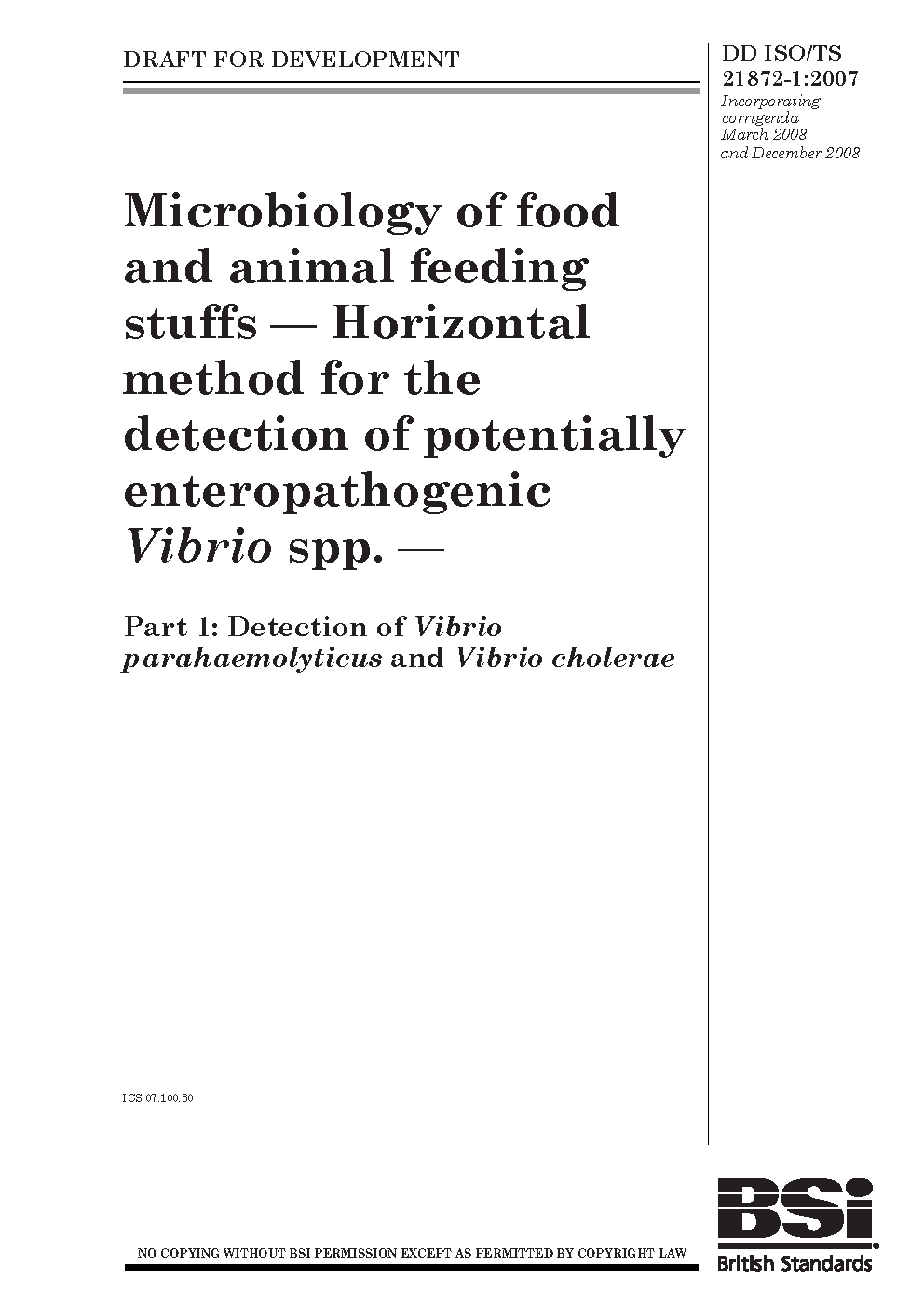Microbiology of food and animal feeding stuffs. Horizontal method for the detection potentially enteropathogenic Vibrio spp. Detection parahaemolyticus cholerae