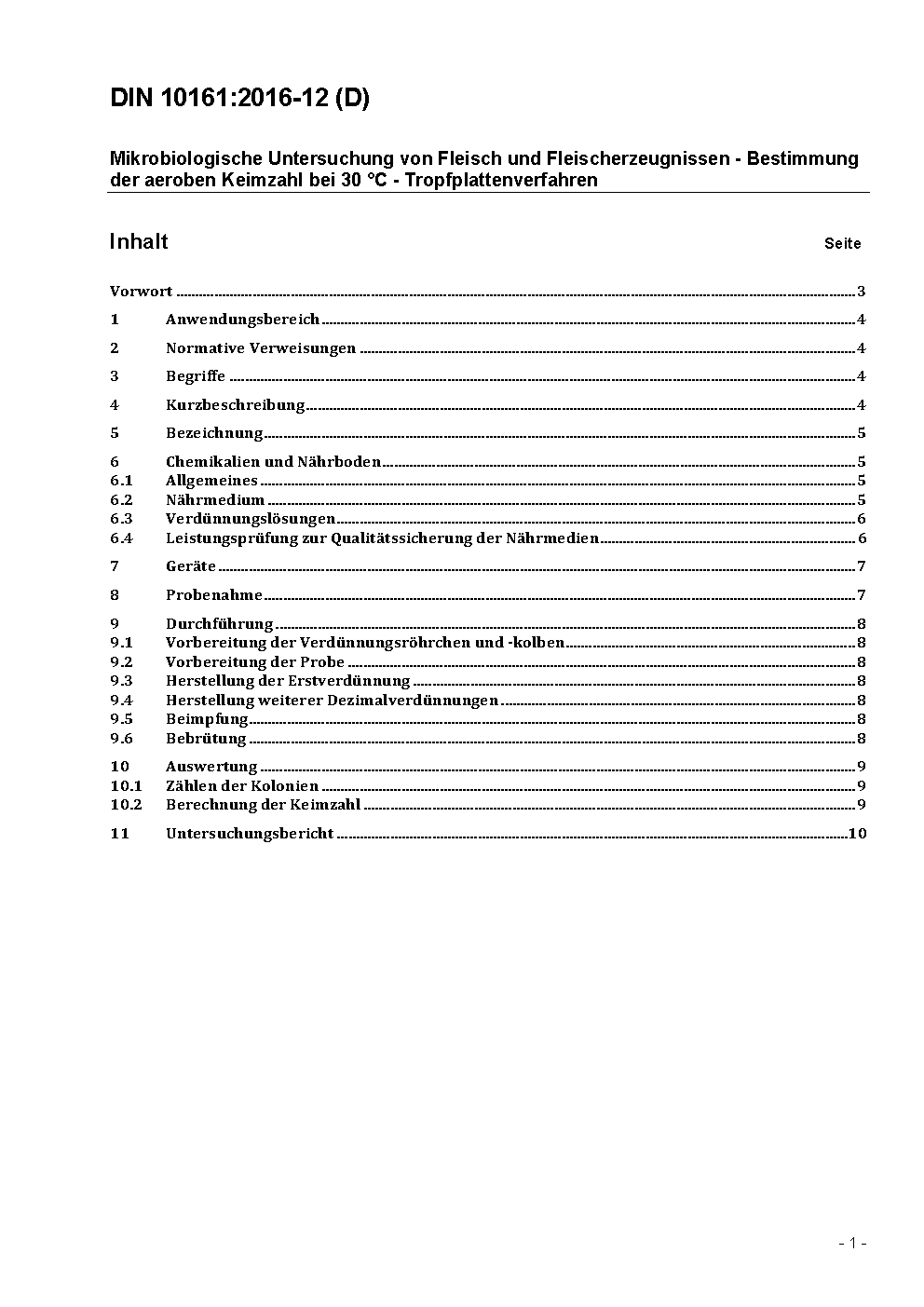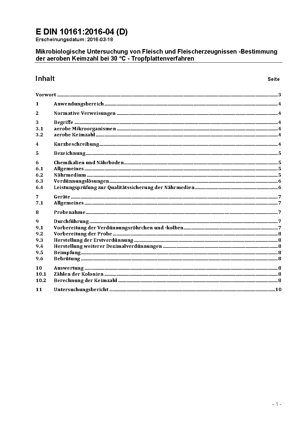 Mikrobiologische Untersuchung von Fleisch und Fleischerzeugnissen - Bestimmung der aeroben Keimzahl bei 30 °C - Tropfplattenverfahren