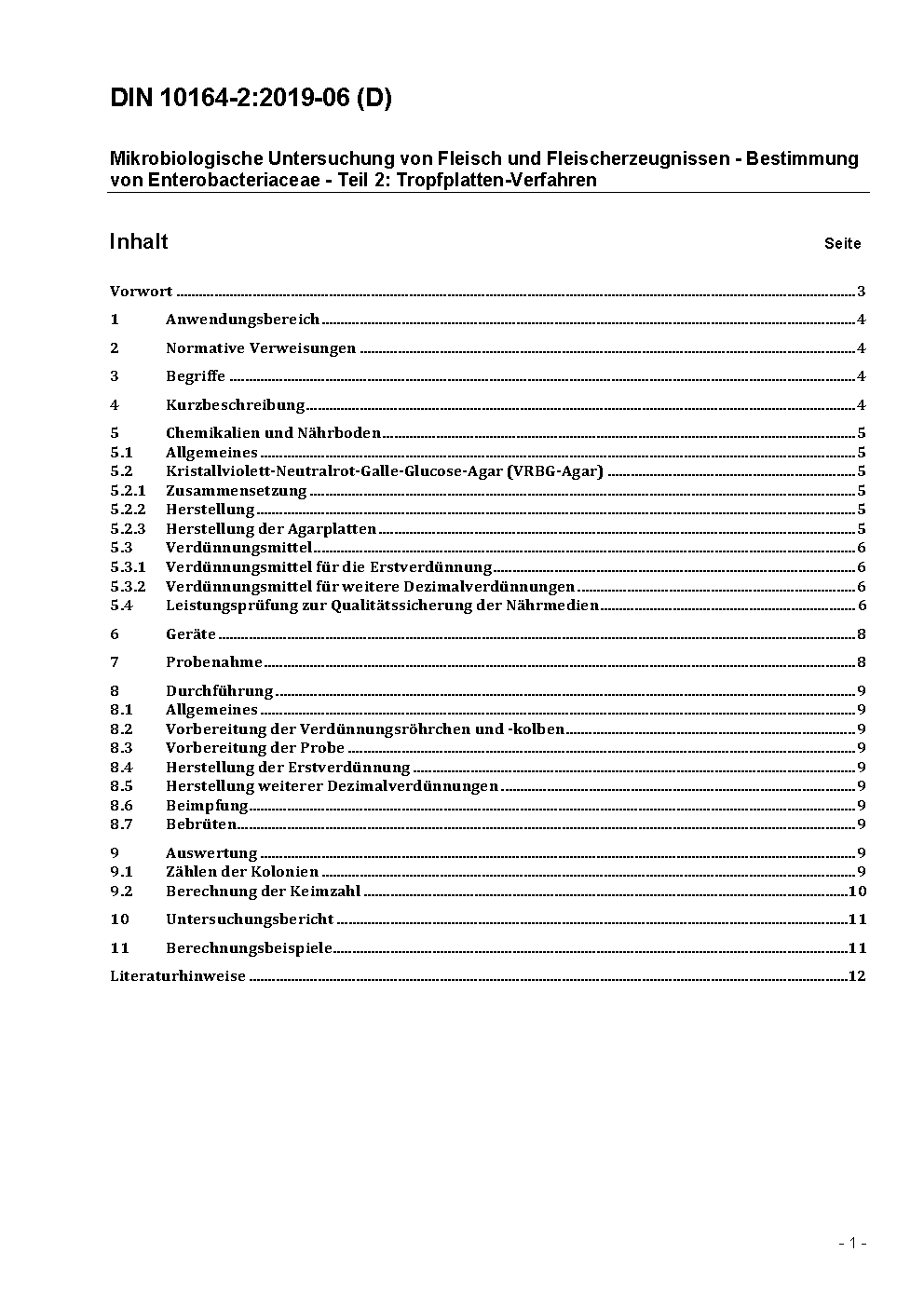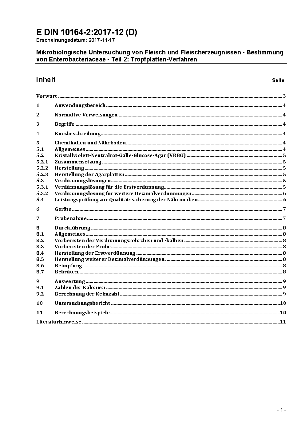 Mikrobiologische Untersuchung von Fleisch und Fleischerzeugnissen; Bestimmung von Enterobacteriaceae; Tropfplatten-Verfahren
