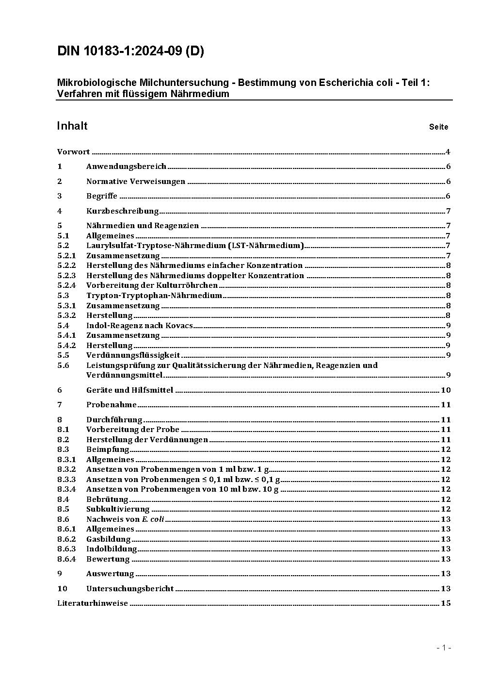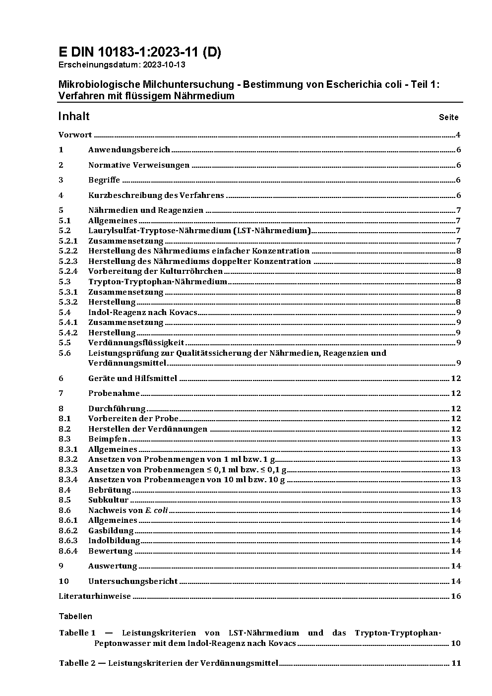 Mikrobiologische Milchuntersuchung; Bestimmung der Escherichia coli; Verfahren mit flüssigem Nährmedium