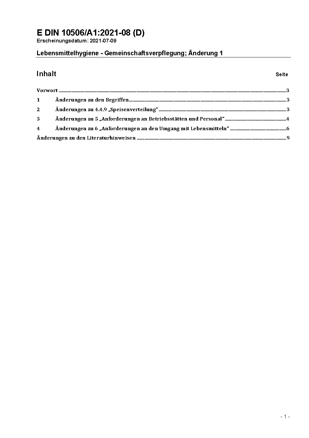 Lebensmittelhygiene - Gemeinschaftsverpflegung; Änderung 2