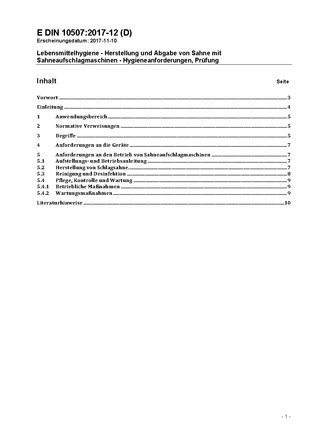 Lebensmittelhygiene - Sahneaufschlagmaschinen, Mischpatronentyp - Hygieneanforderungen, Prüfung