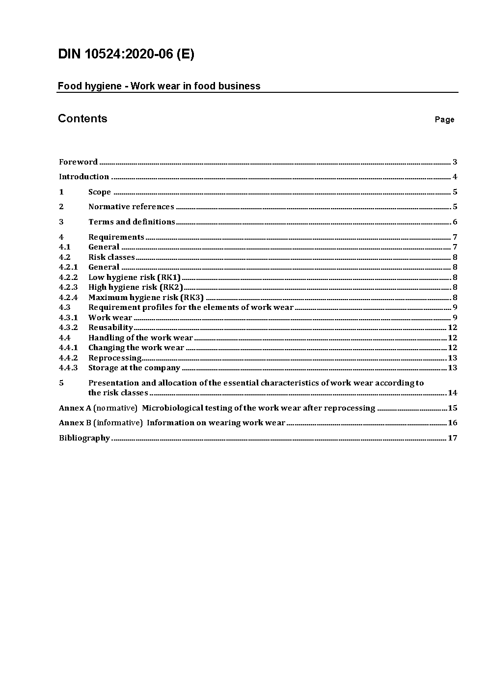 Food hygiene - Work wear in food business; Text in German, English and French