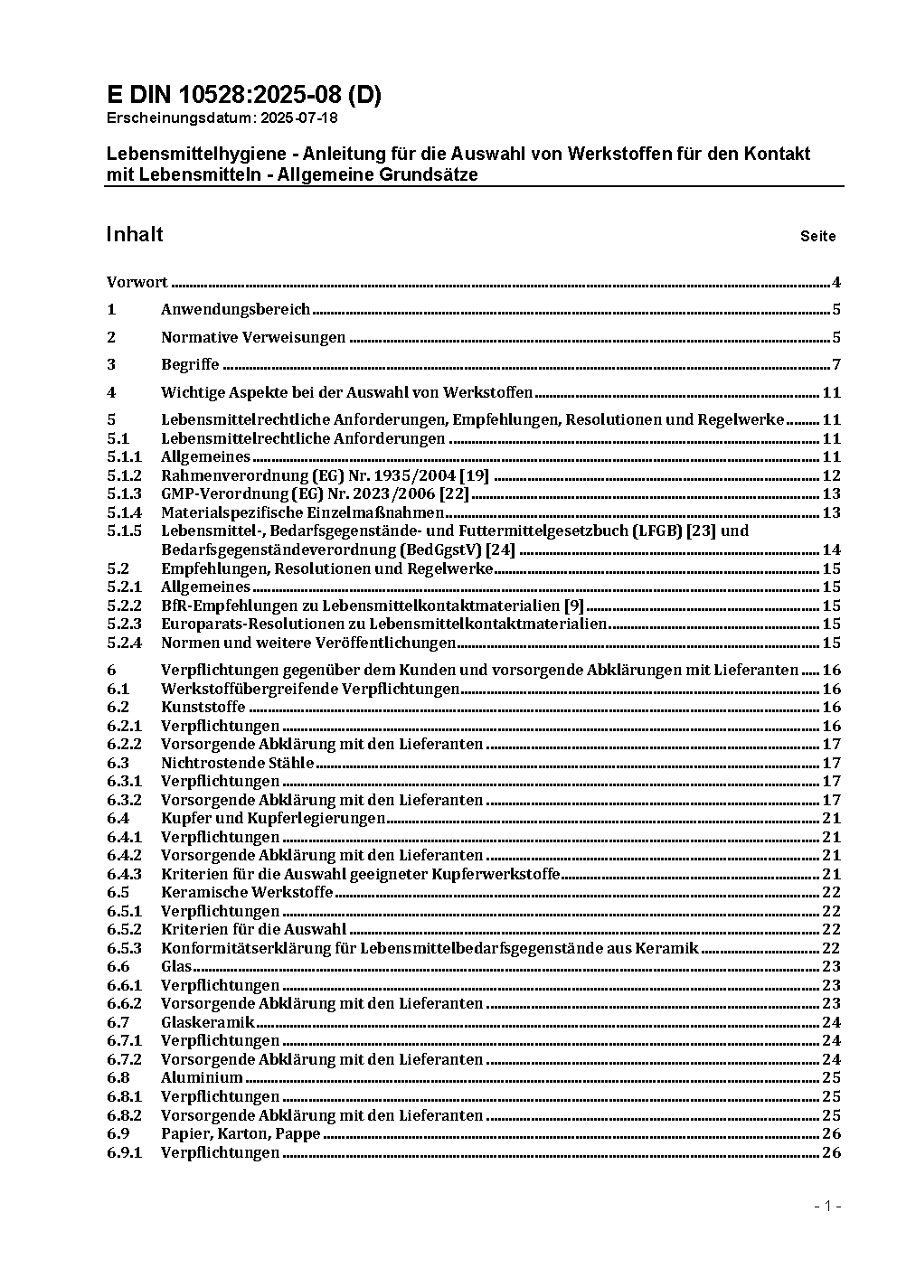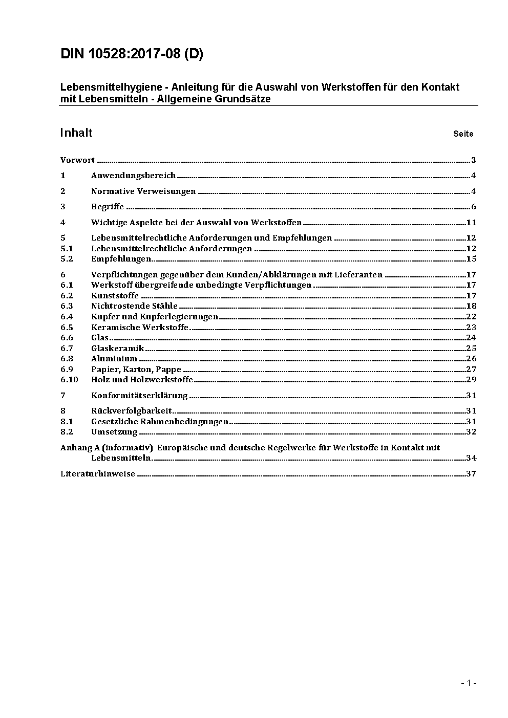Lebensmittelhygiene - Anleitung für die Auswahl von Werkstoffen für den Kontakt mit Lebensmitteln - Allgemeine Grundsätze