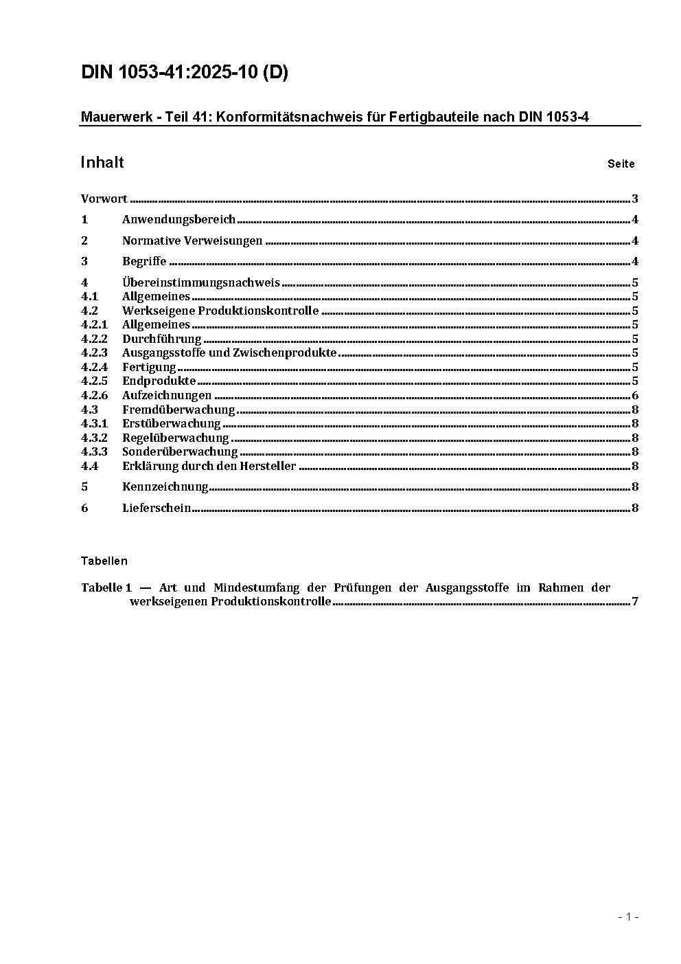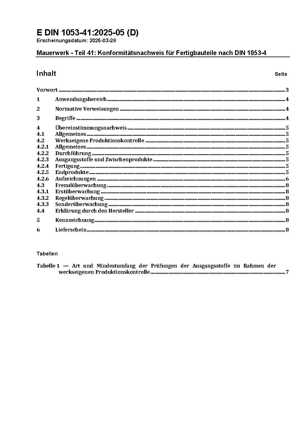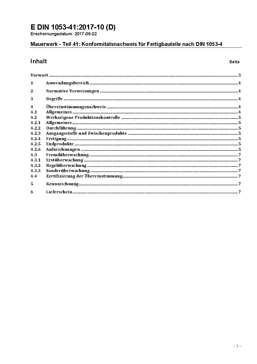 Mauerwerk - Teil 41: Konformitätsnachweis für Fertigbauteile nach DIN 1053-4