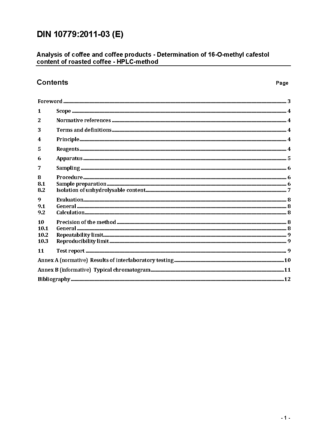 Untersuchung von Kaffee und Kaffee-Erzeugnissen - Bestimmung des Gehaltes an 16-O-Methylcafestol in Röstkaffee - HPLC-Verfahren