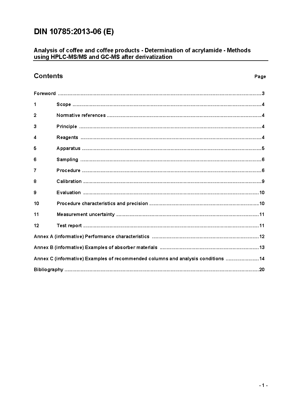 Analysis of coffee and coffee products - Determination of acrylamide - Methods using HPLC-MS/MS and GC-MS after derivatization