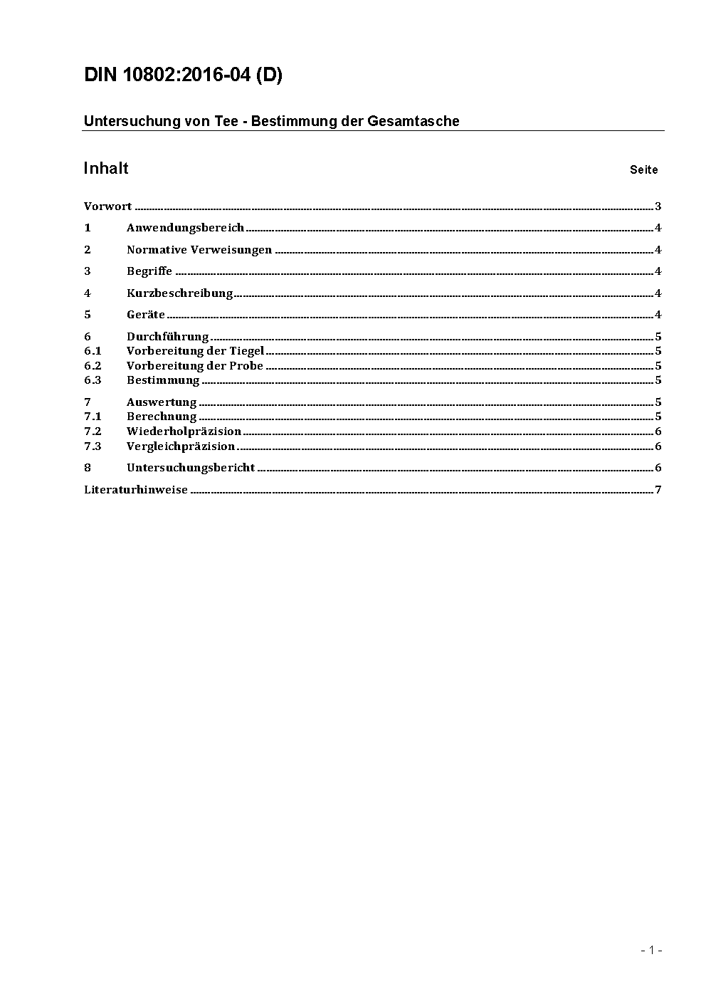 Untersuchung von Tee - Bestimmung der Gesamtasche