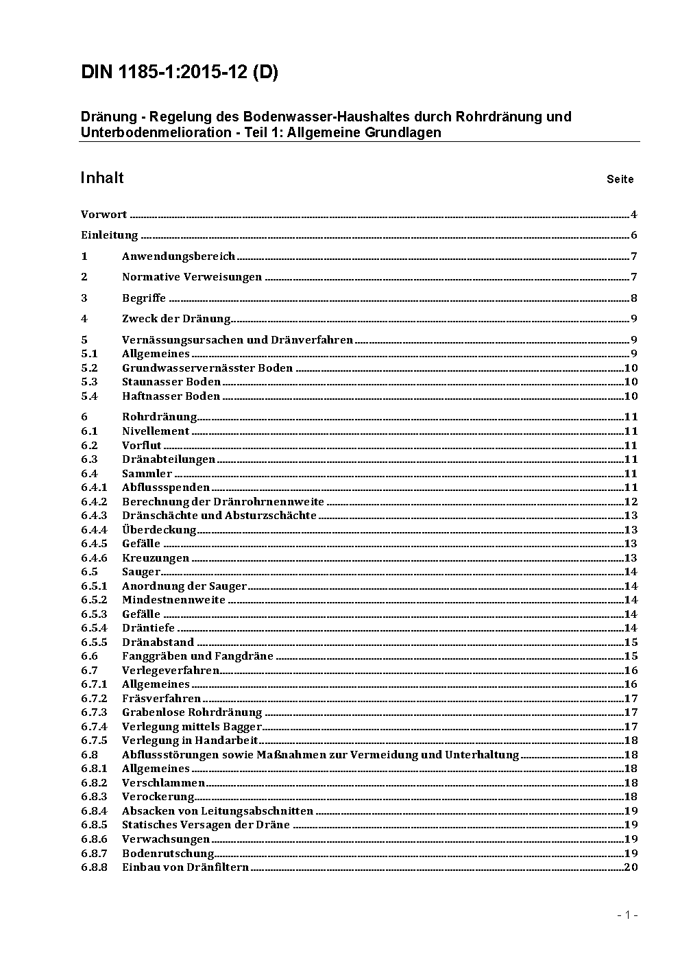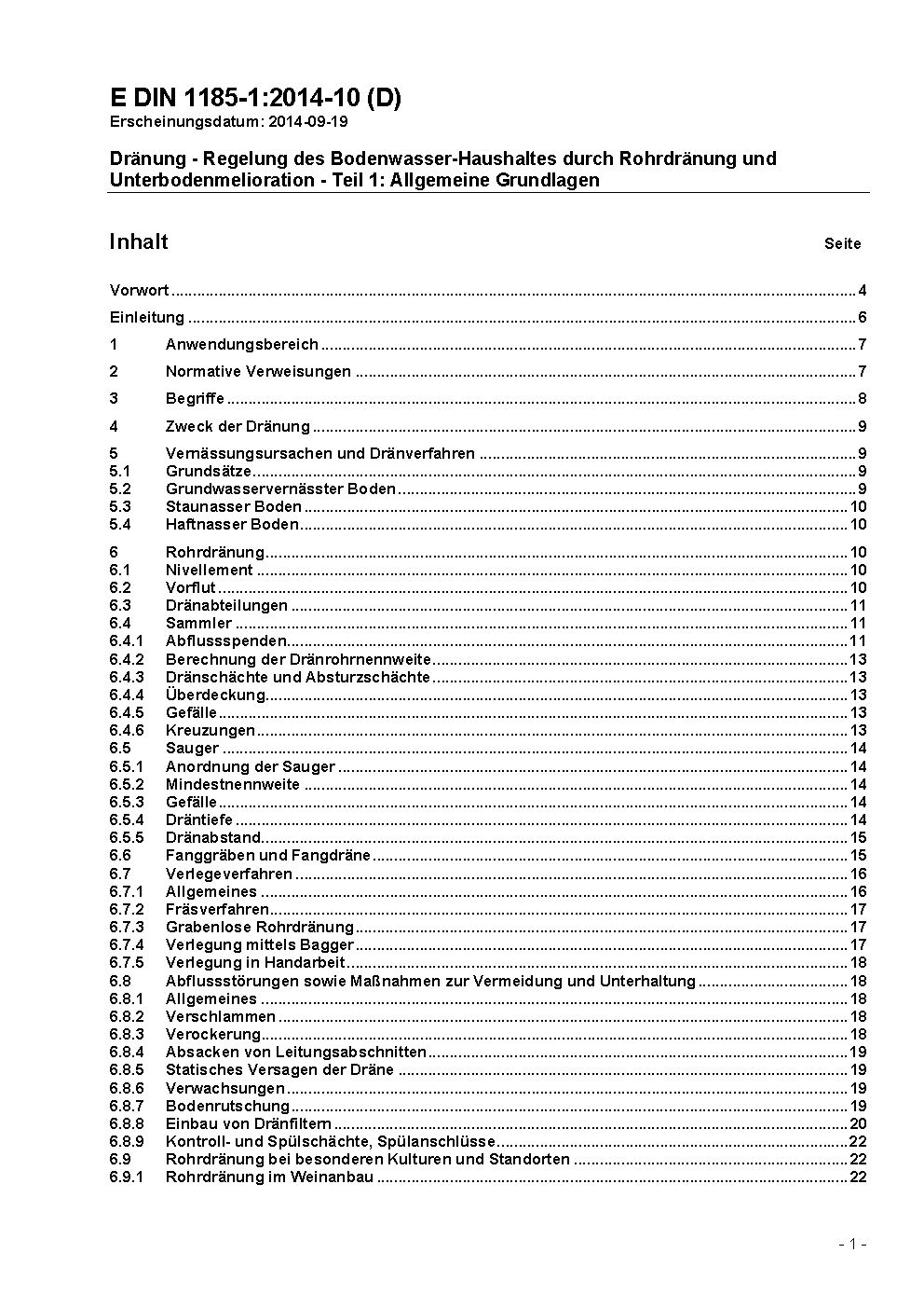 Dränung - Regelung des Bodenwasser-Haushaltes durch Rohrdränung und Unterbodenmelioration - Teil 1: Allgemeine Grundlagen