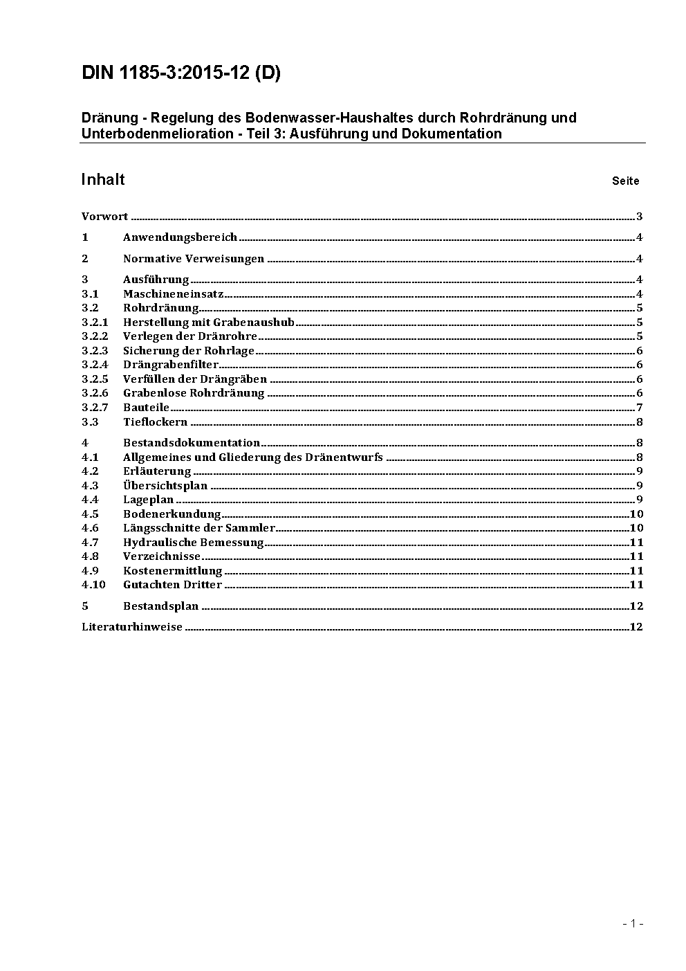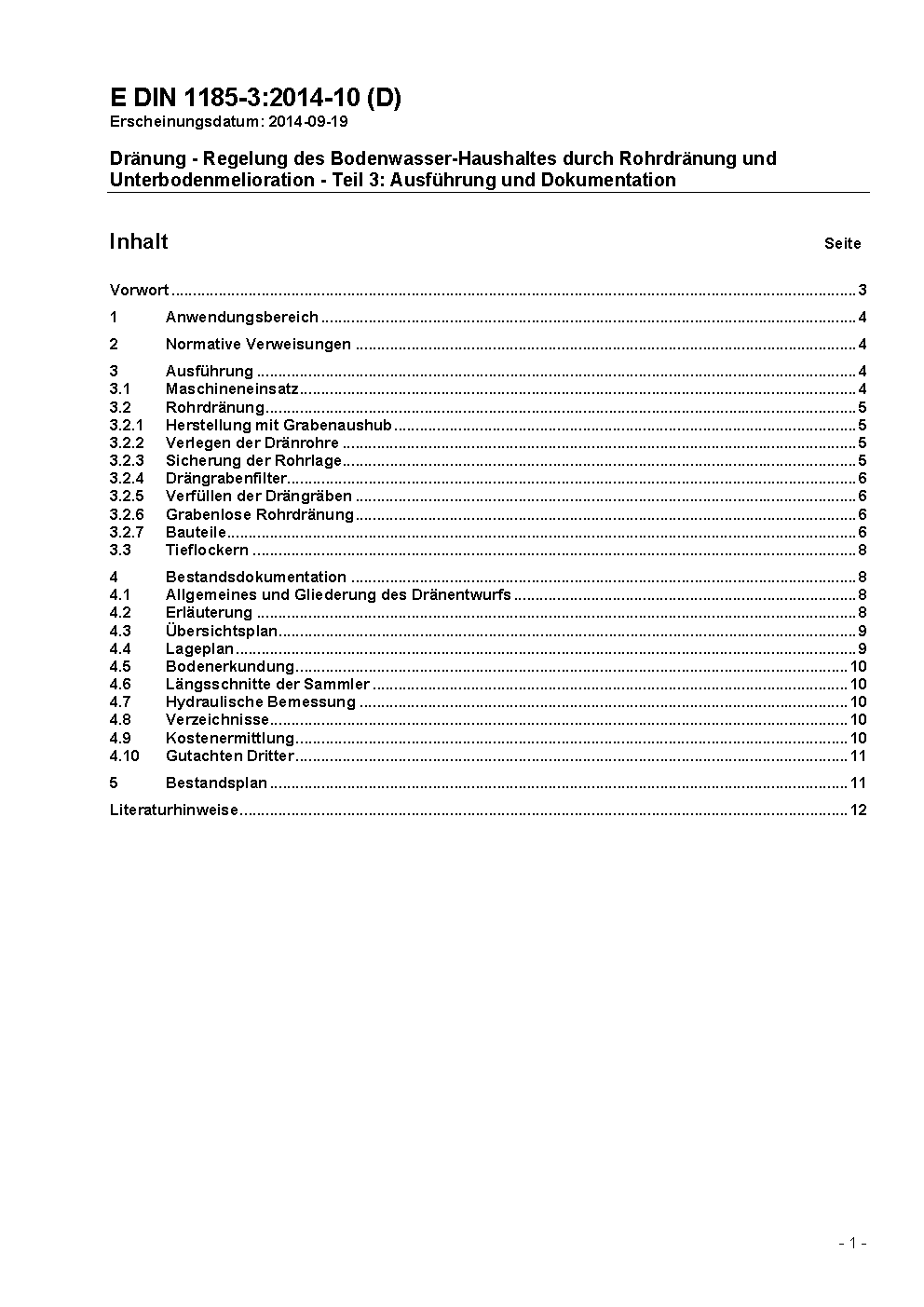 Dränung - Regelung des Bodenwasser-Haushaltes durch Rohrdränung und Unterbodenmelioration - Teil 3: Ausführung und Dokumentation