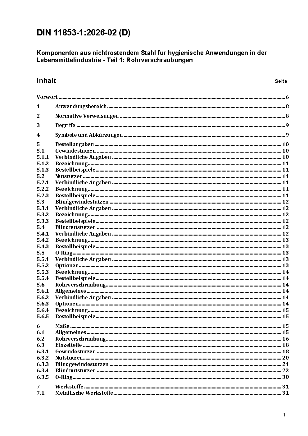 Stainless steel fittings for the food and chemical industry - Part 1: Hygienic screwed pipe connection, short type