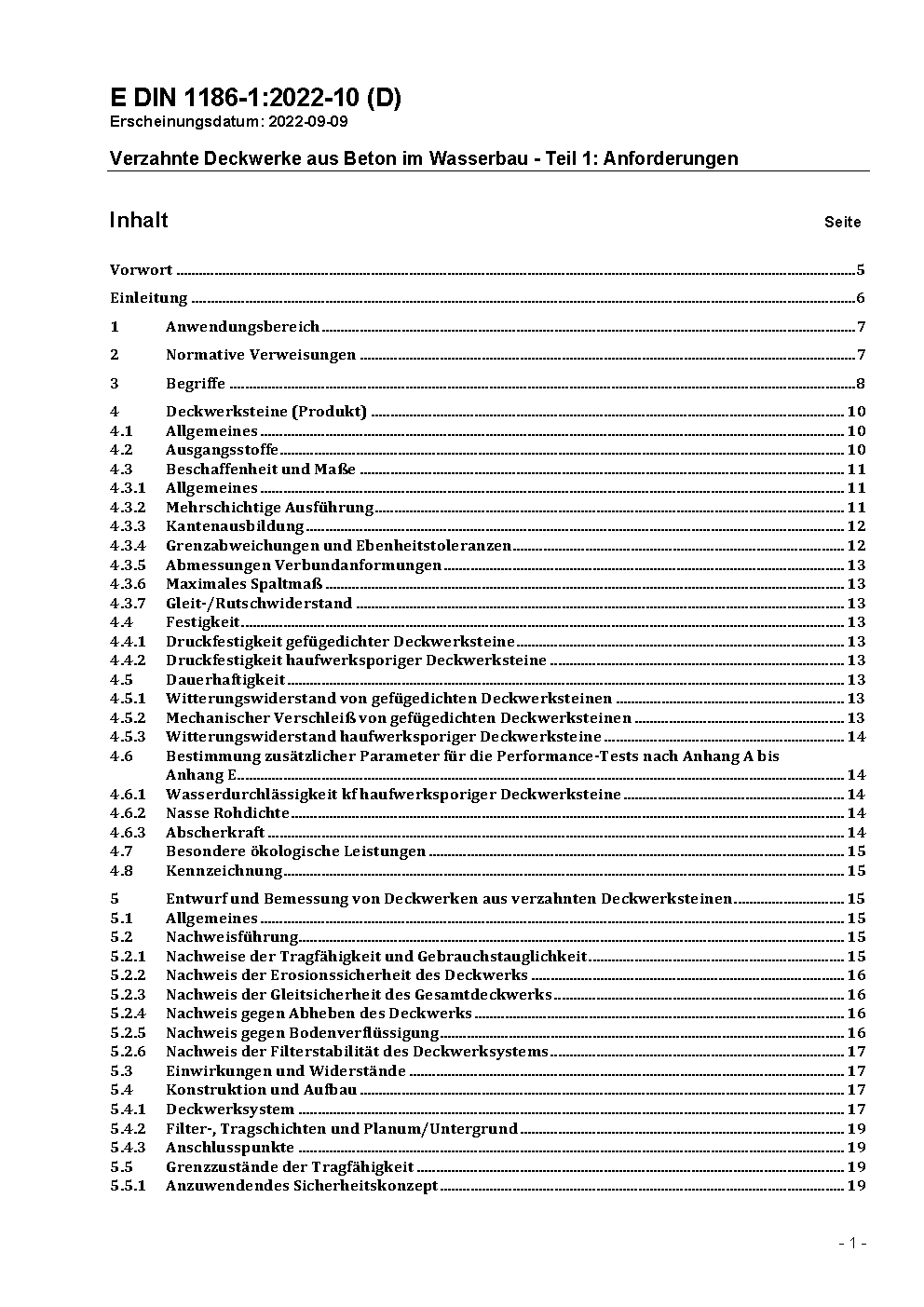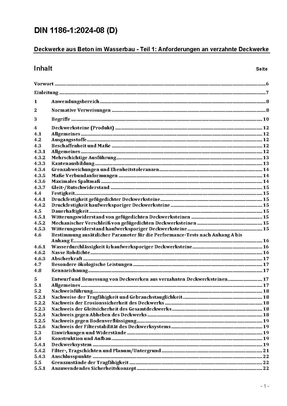 Verzahnte Deckwerke aus Beton im Wasserbau - Teil 1: Anforderungen