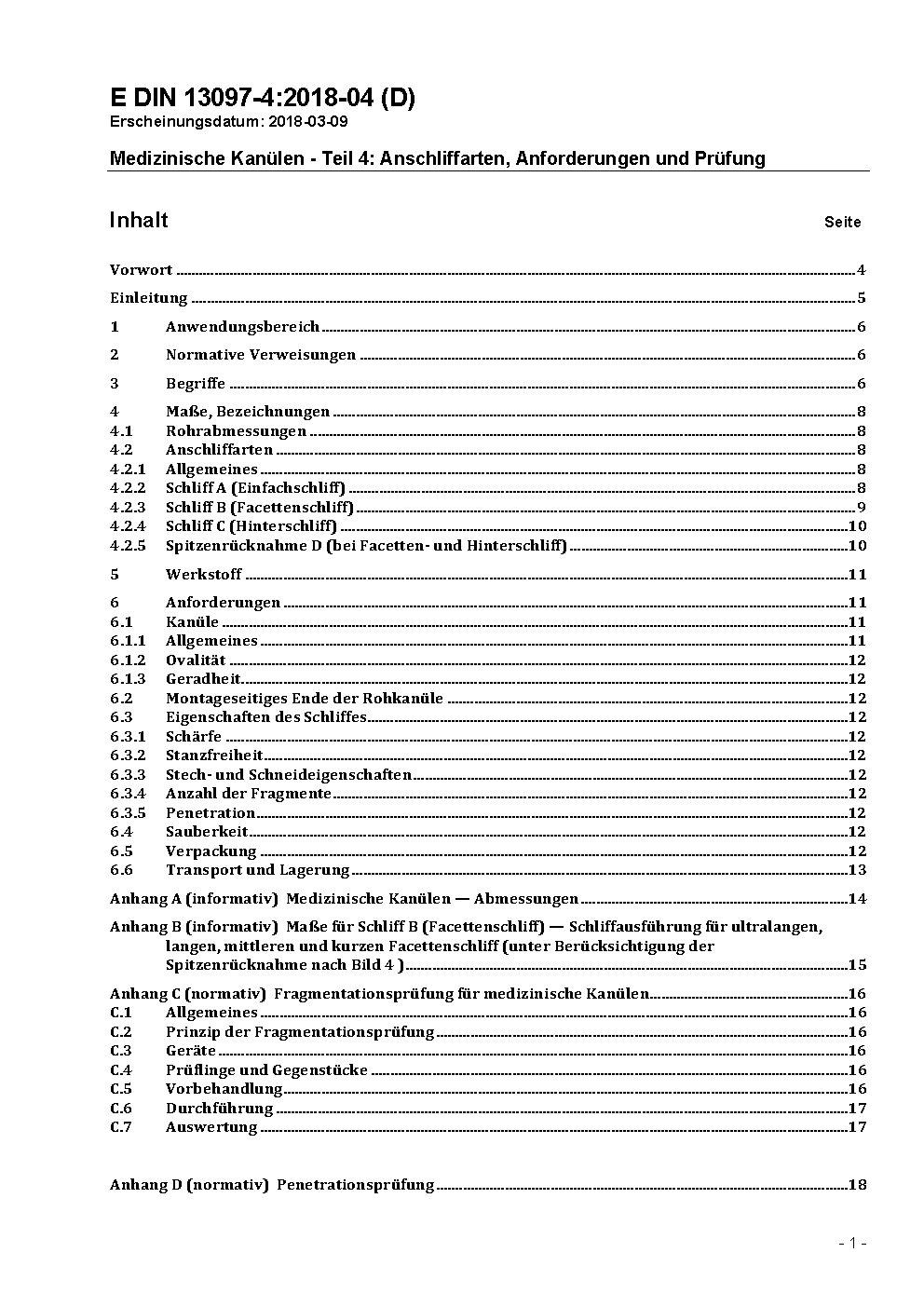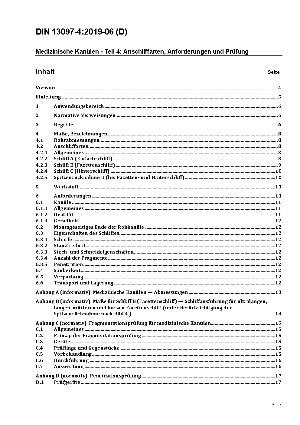 Medizinische Kanülen - Teil 4: Anschliffarten, Anforderungen und Prüfung