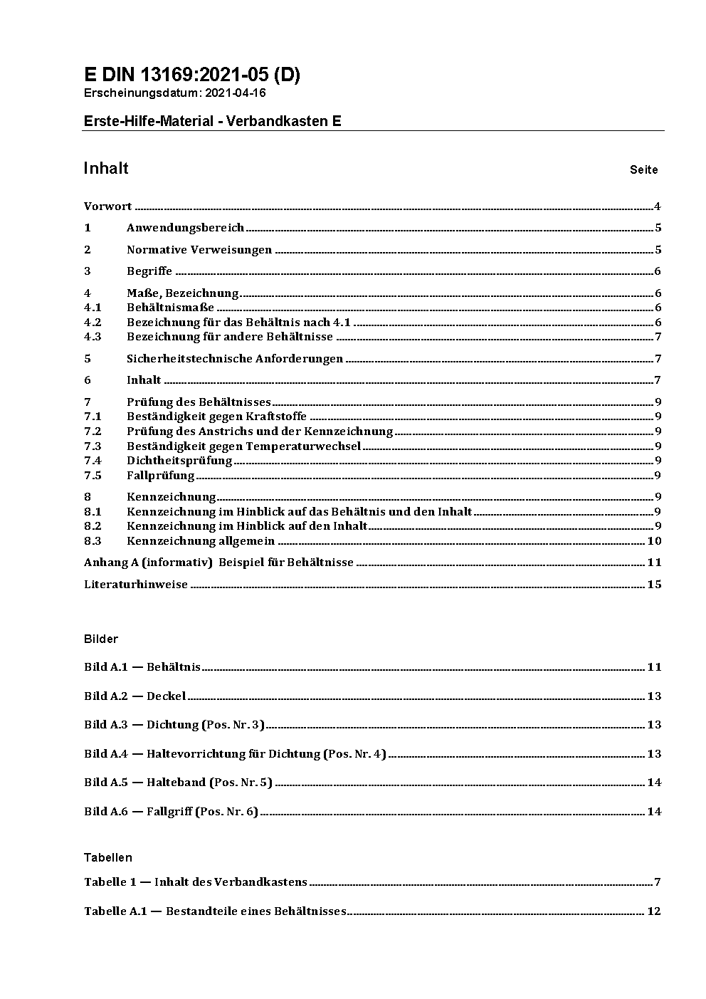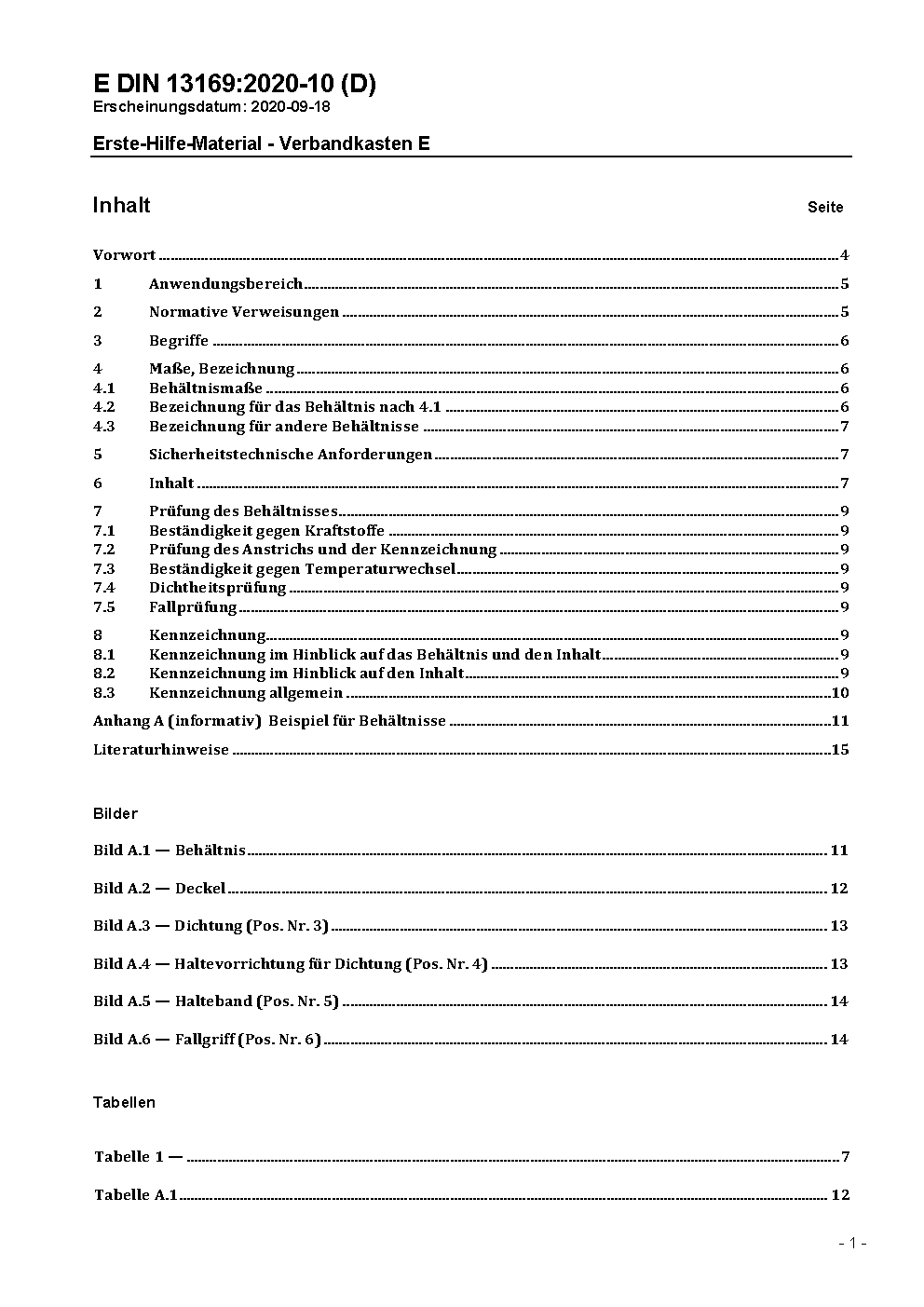 Erste-Hilfe-Material - Verbandkasten E / Achtung: Daneben gilt DIN 13169 (2009-11) noch bis 2022-04-30.