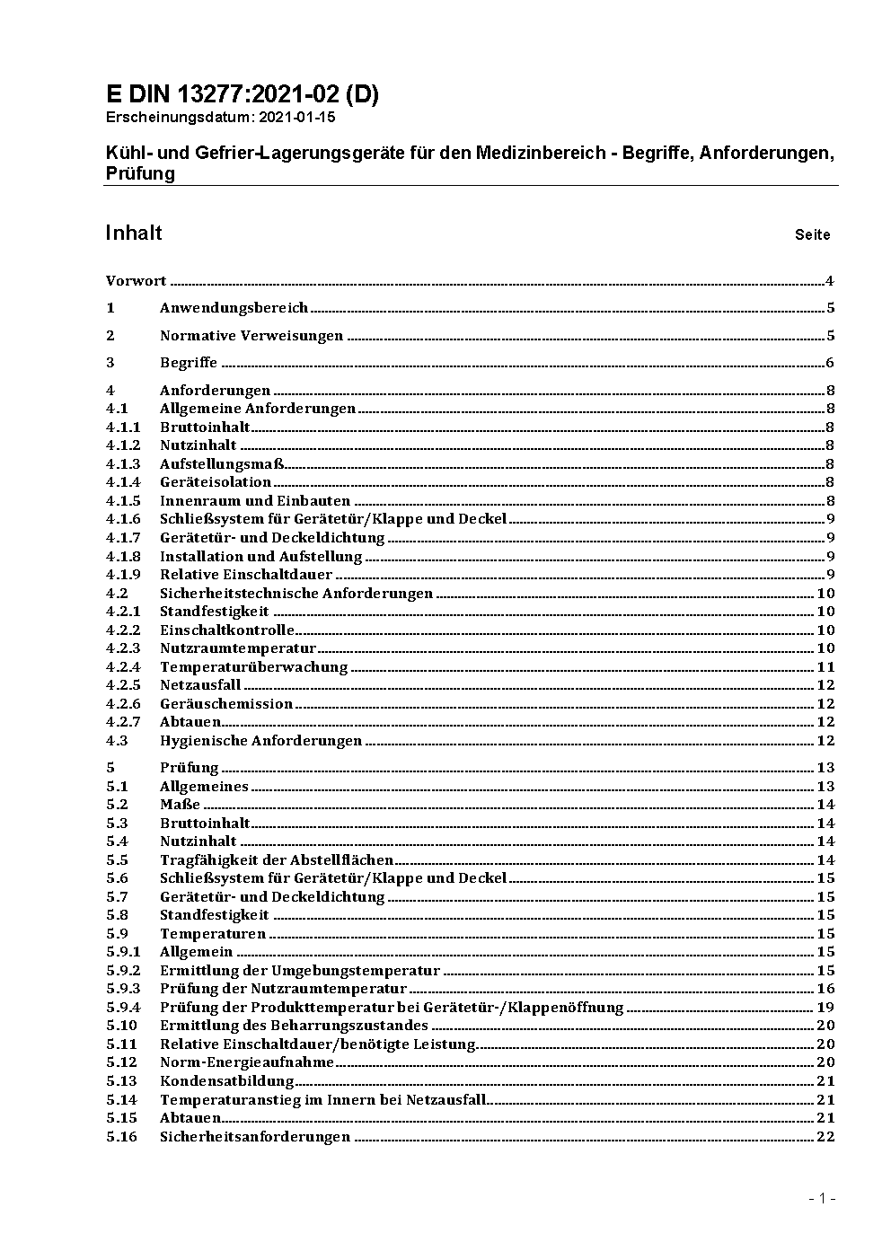 Kühl- und Gefrier-Lagerungsgeräte für Labor- und Medizinanwendungen - Terminologie, Anforderungen, Prüfung / Achtung: Daneben gelten DIN 13221 (2016-08), DIN 58345 (2007-09), DIN 58371 (2010-09) und DIN 58375 (2004-11) noch bis 2022-10-31.
