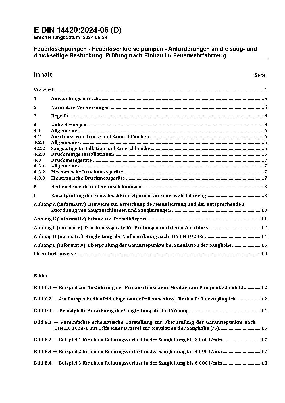 Feuerlöschpumpen - Feuerlöschkreiselpumpen - Anforderungen an die saug- und druckseitige Bestückung, Prüfung nach Einbau im Feuerwehrfahrzeug