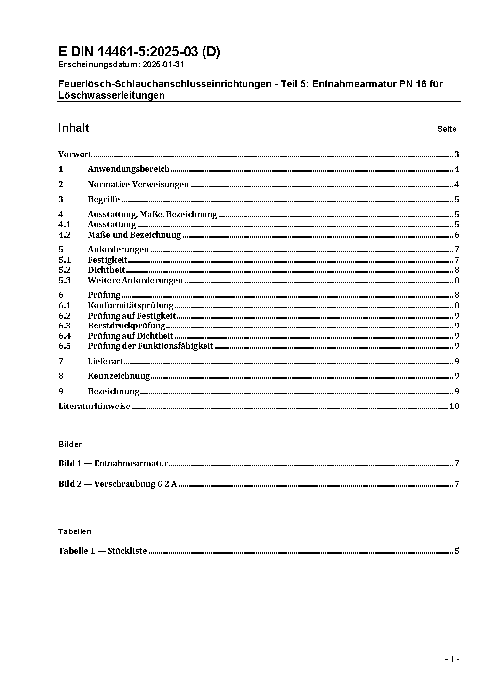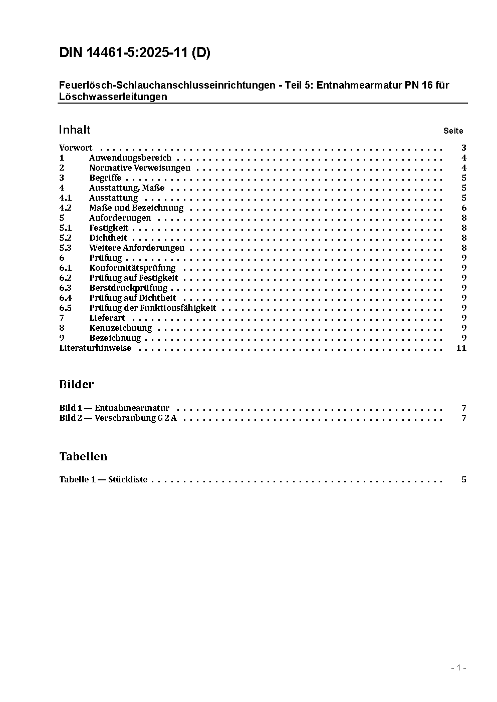 Feuerlösch-Schlauchanschlusseinrichtungen - Teil 5: Entnahmearmatur PN 16 für Löschwasserleitungen