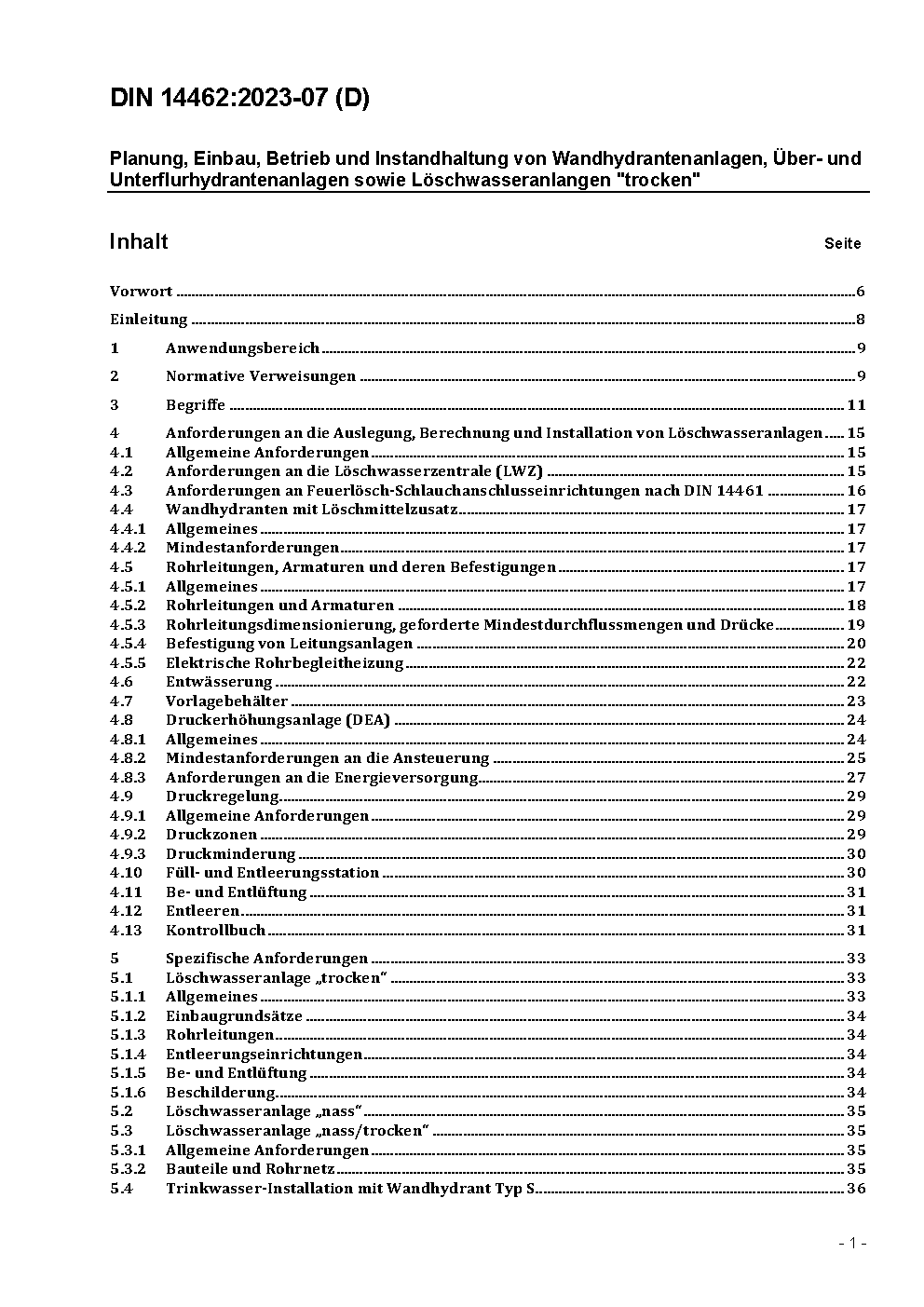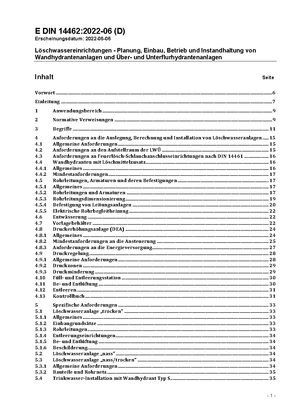 Löschwassereinrichtungen - Planung, Einbau, Betrieb und Instandhaltung von Wandhydrantenanlagen und Überflur- und Unterflurhydrantenanlagen