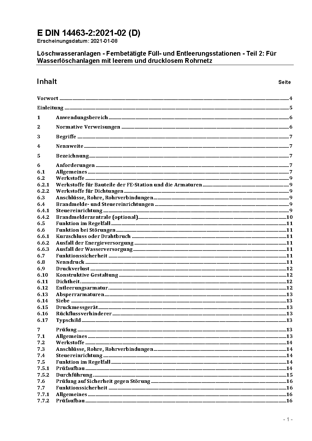 Löschwasseranlagen - Fernbetätigte Füll- und Entleerungsstationen - Teil 2: Für Wasserlöschanlagen mit leerem und drucklosem Rohrnetz; Anforderungen und Prüfverfahren