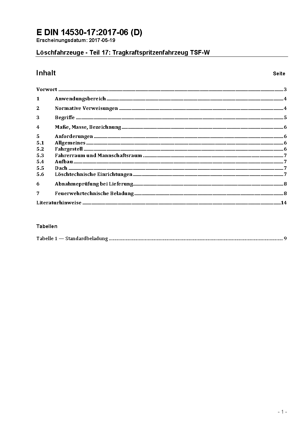 Fire fighting vehicles - Part 17: Pumping appliance TSF-W