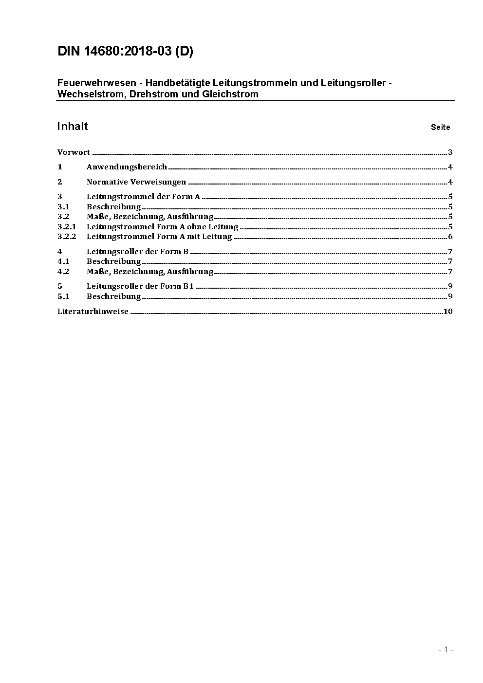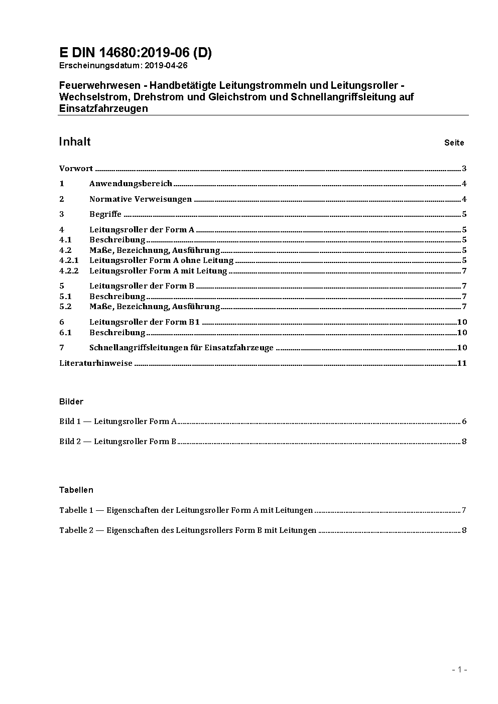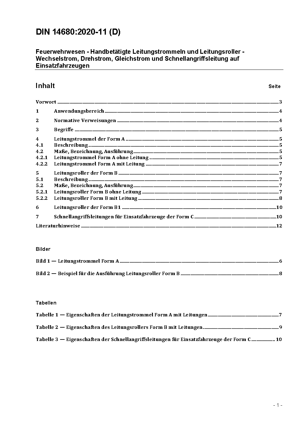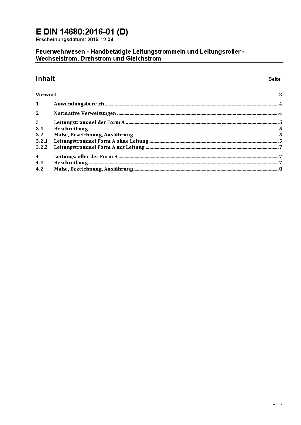 Feuerwehrwesen - Handbetätigte Leitungstrommeln und Leitungsroller - Wechselstrom, Drehstrom und Gleichstrom