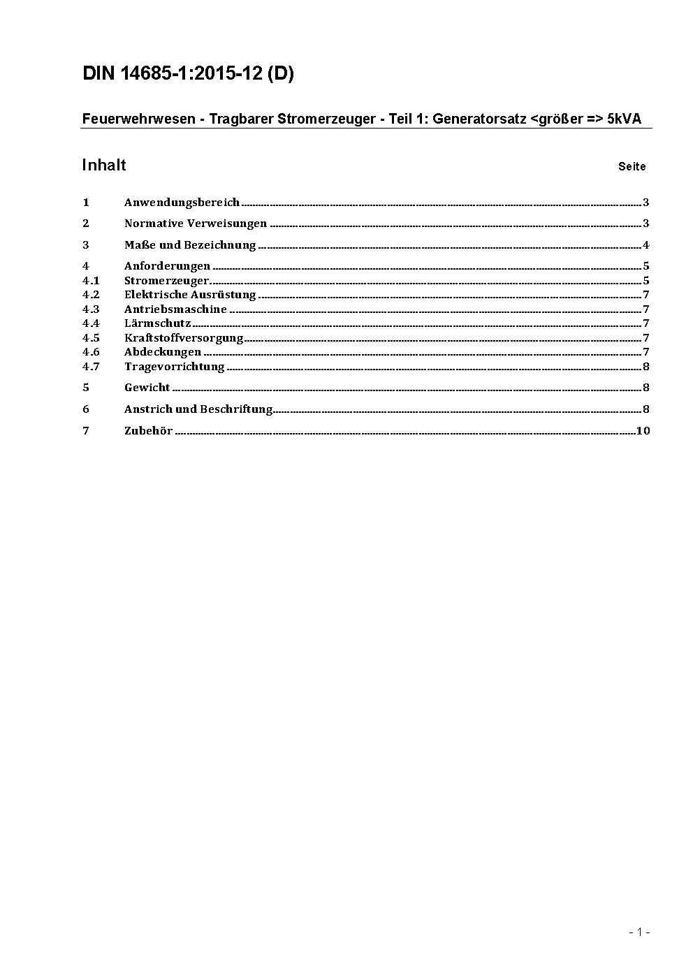 Feuerwehrwesen - Tragbarer Stromerzeuger - Teil 1: Generatorsatz 5 kVA