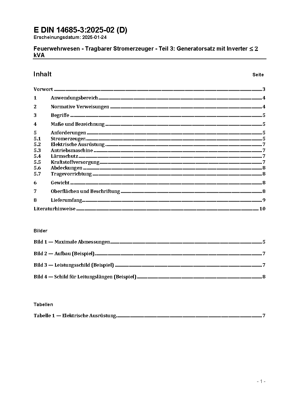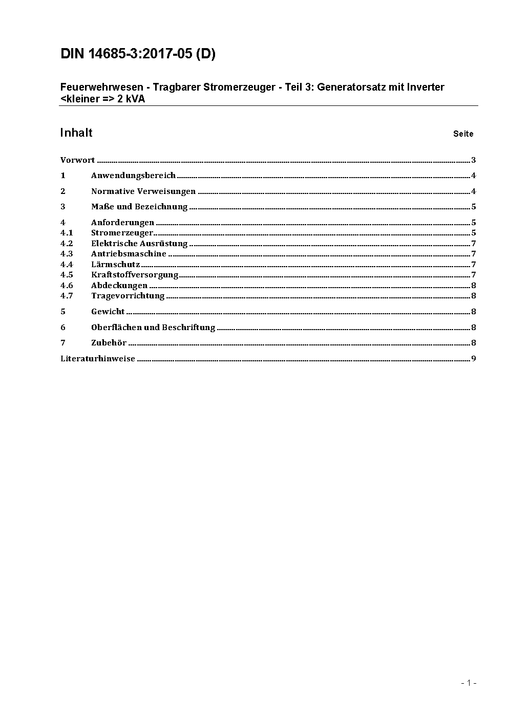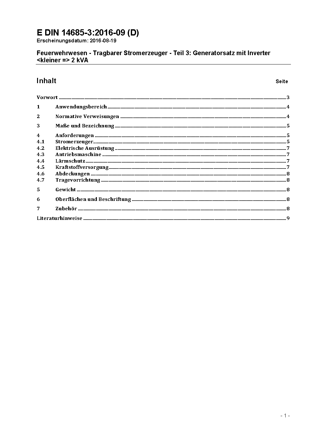 Feuerwehrwesen - Tragbarer Stromerzeuger - Teil 3: Generatorsatz mit Inverter 2 kVA