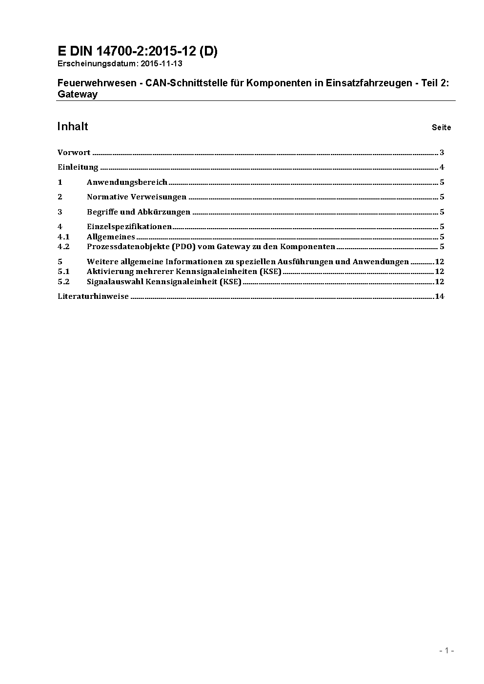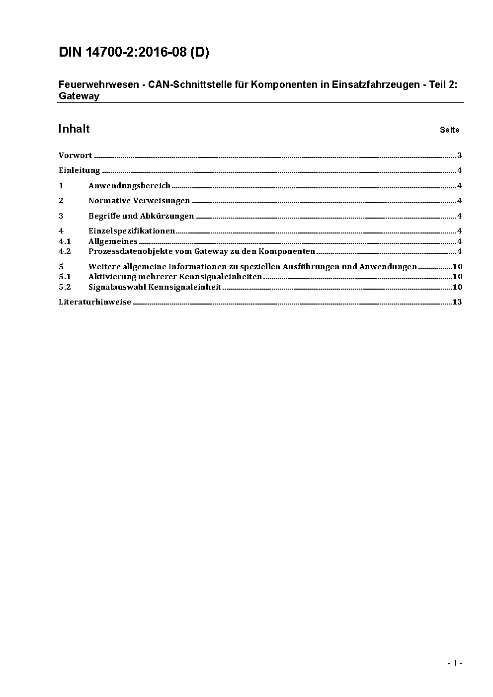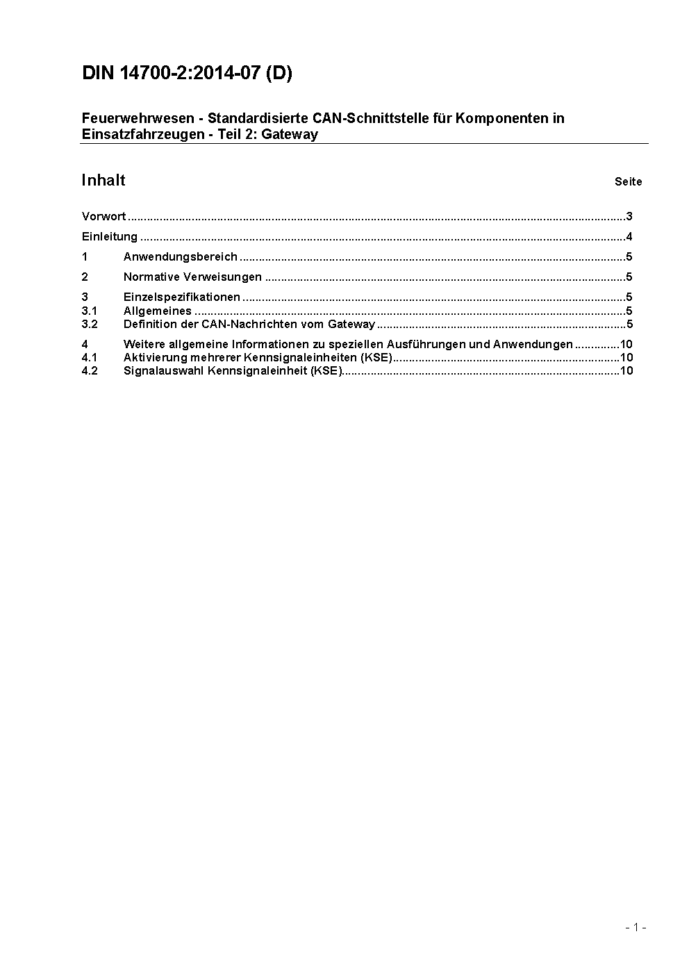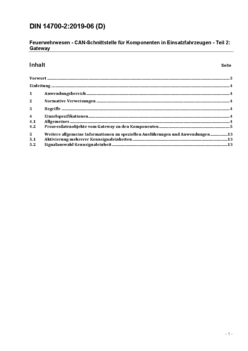 Feuerwehrwesen - CAN-Schnittstelle für Komponenten in Einsatzfahrzeugen - Teil 2: Gateway
