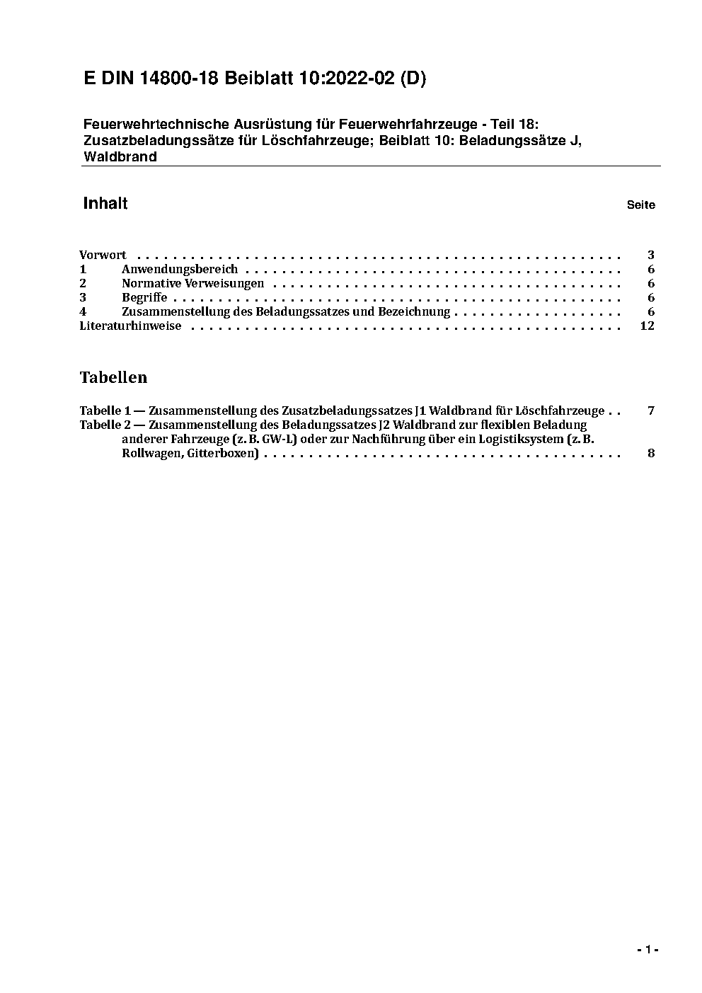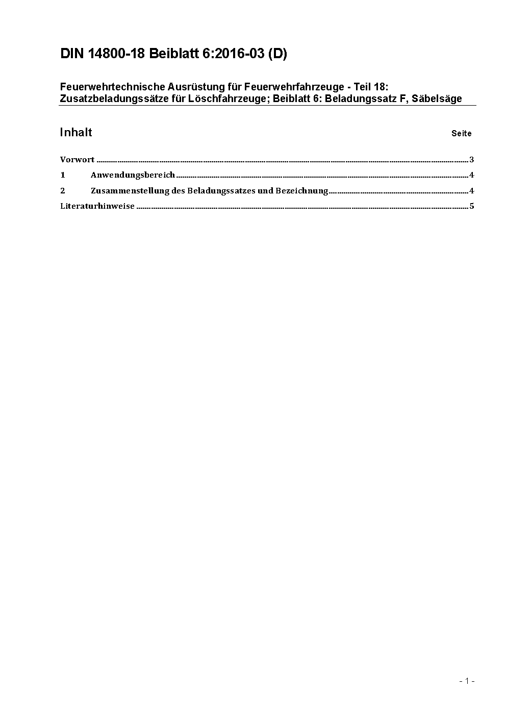 Feuerwehrtechnische Ausrüstung für Feuerwehrfahrzeuge - Teil 18: Zusatzbeladungssätze für Löschfahrzeuge; Beiblatt 6: Beladungssatz F, Säbelsäge / Achtung: Gilt in Verbindung mit DIN 14800-18 (2011-11)