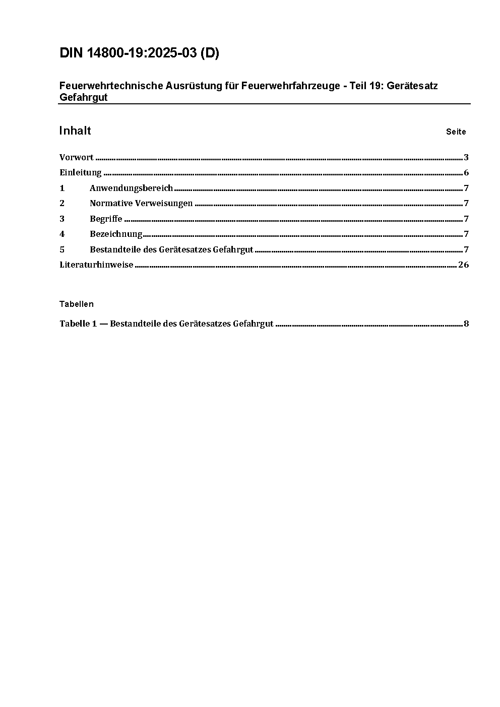 Feuerwehrtechnische Ausrüstung für Feuerwehrfahrzeuge - Teil 19: Gerätesatz Gefahrgut