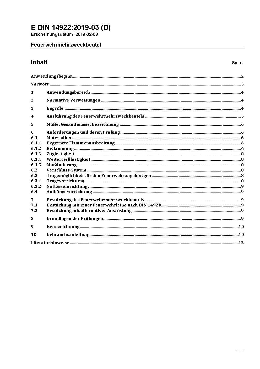 Feuerwehrmehrzweckbeutel / Achtung: Übergangsfrist, festgelegt durch DIN 14922 (2020-02), bis 2020-07-31 beachten.