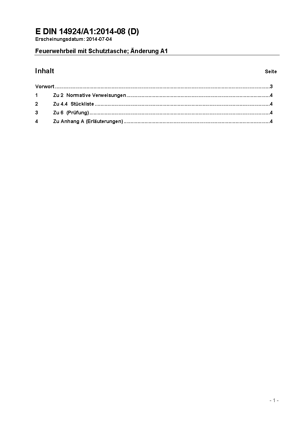 DIN 14924 (1992-06) remains valid alongside this standard until 2003-06-30.*A transition period, as set out in DIN 14924 (2015-05), exists until 2015-10-31.