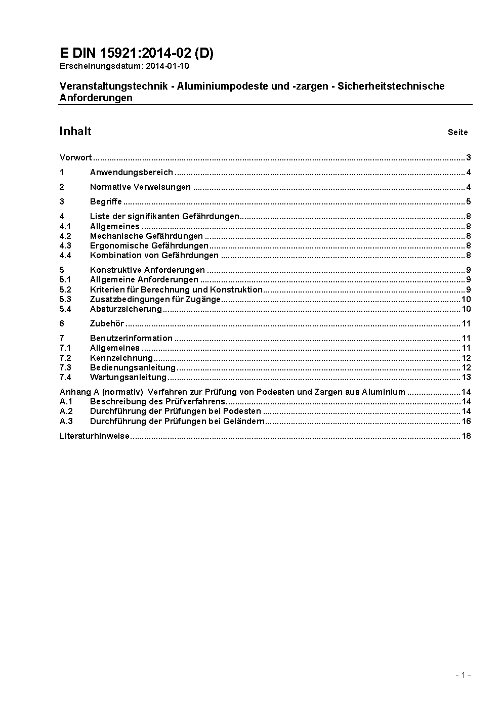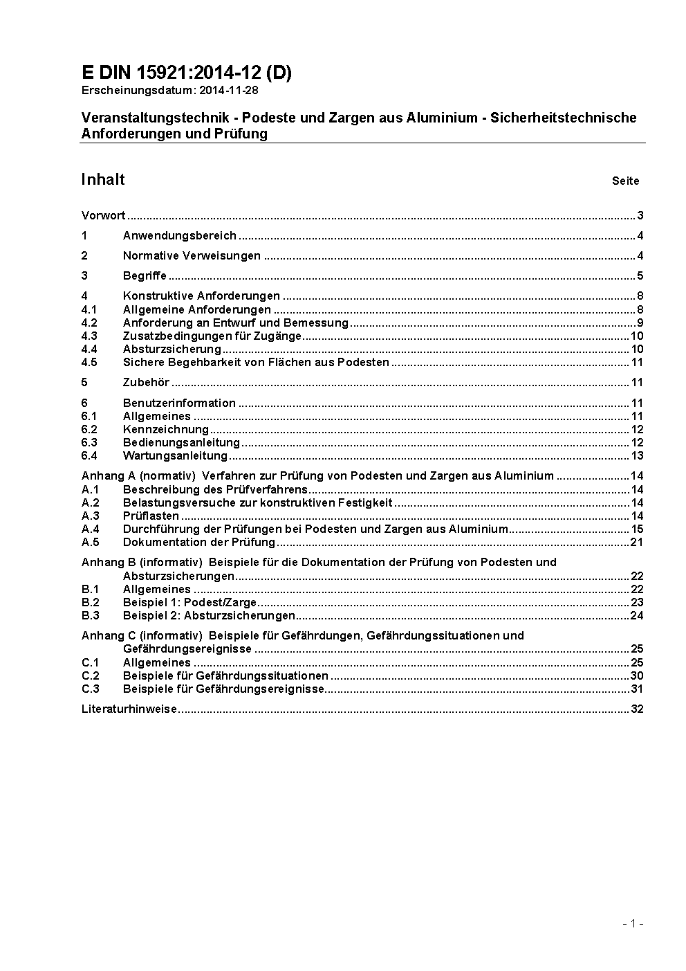 Veranstaltungstechnik - Podeste und Zargen aus Aluminium - Sicherheitstechnische Anforderungen und Prüfung