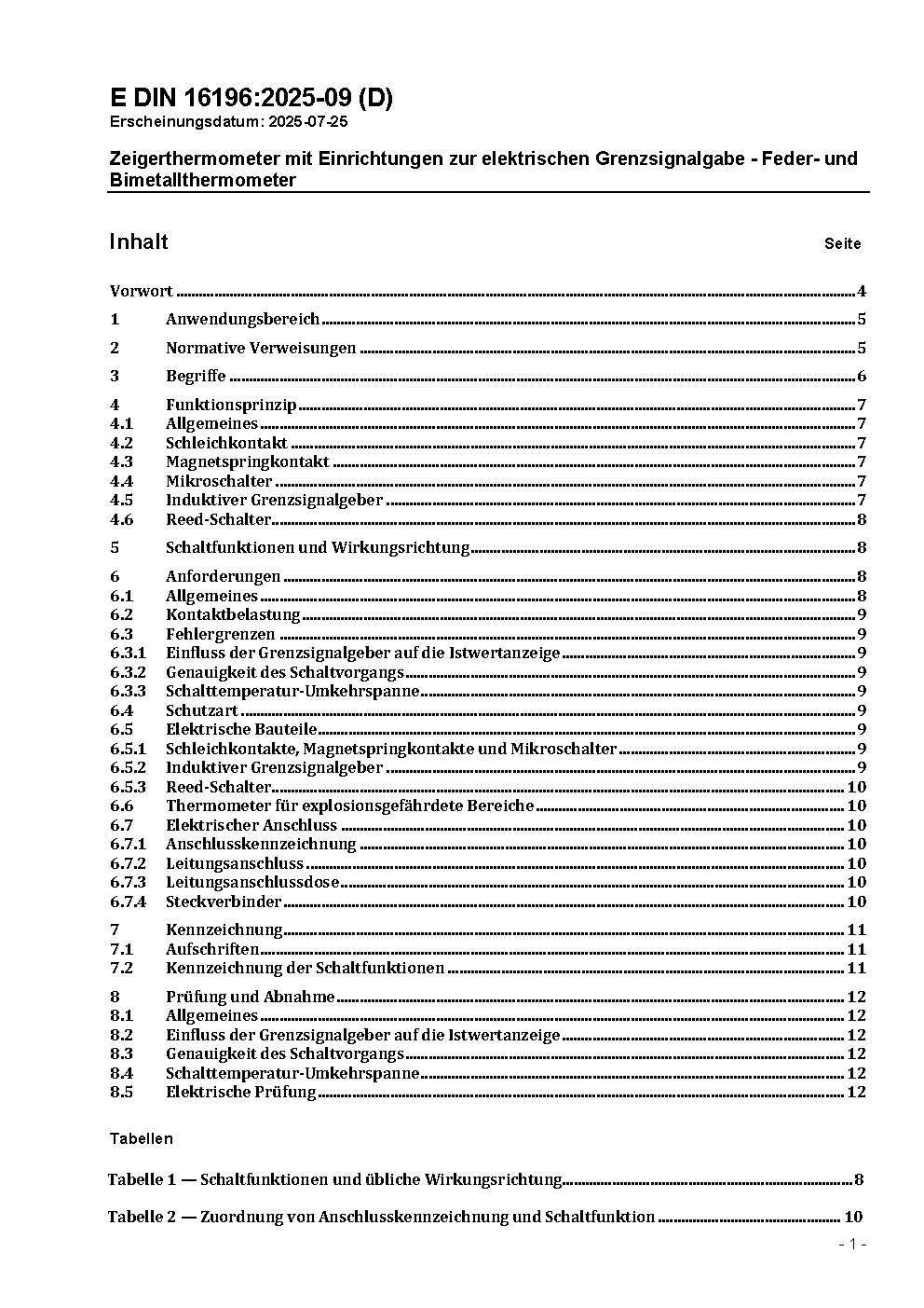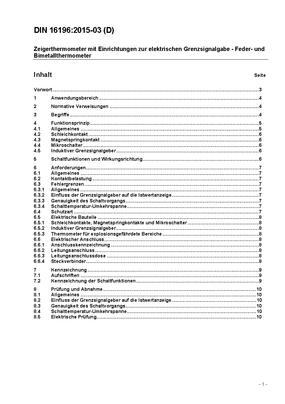Zeigerthermometer mit Einrichtungen zur elektrischen Grenzsignalgabe - Feder- und Bimetallthermometer