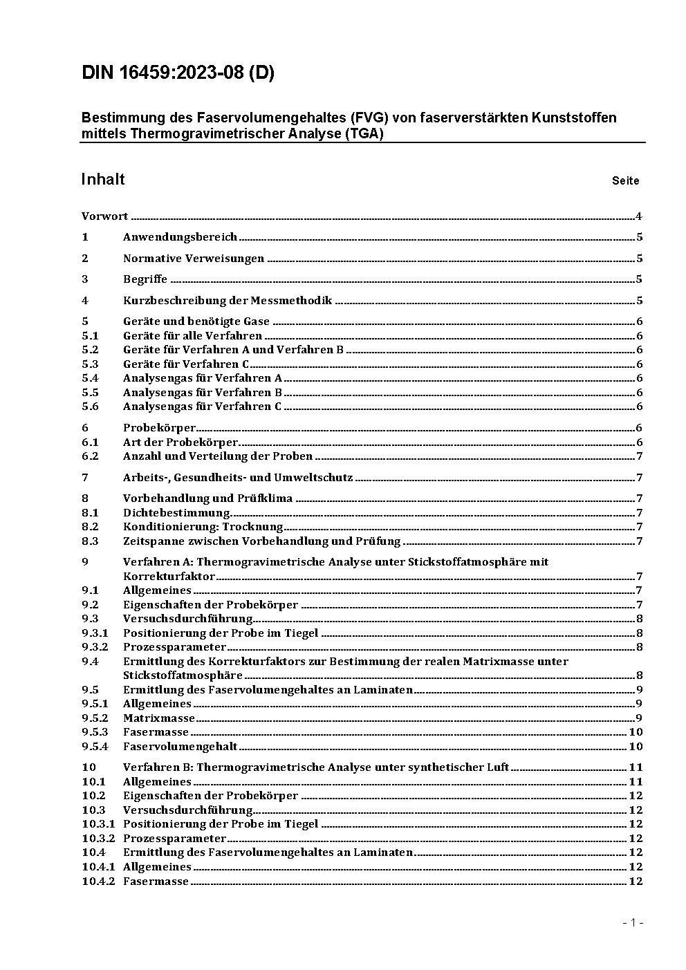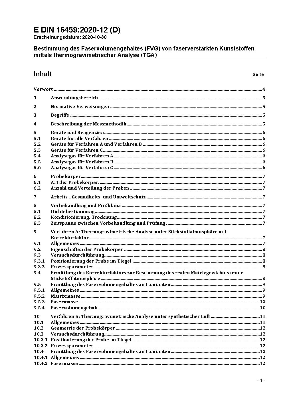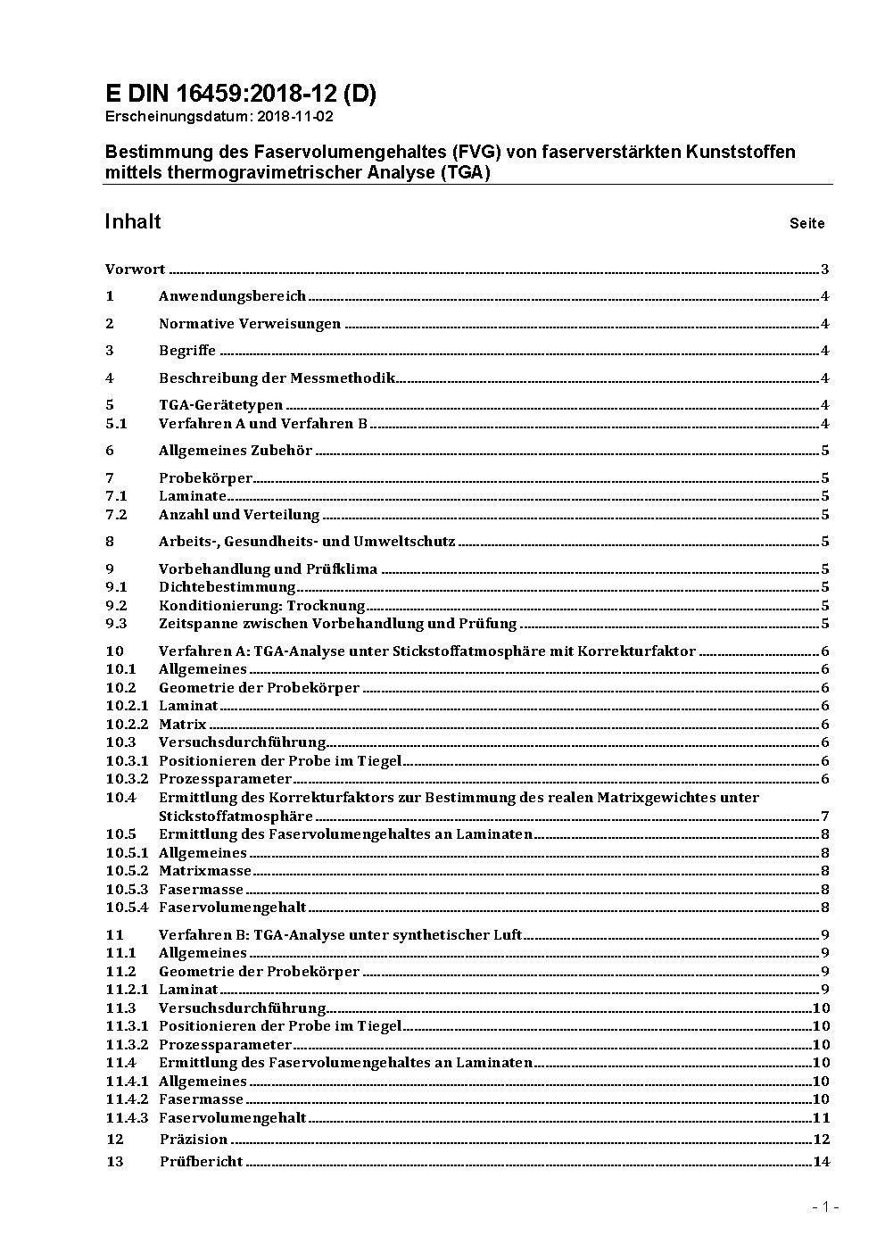 Bestimmung des Faservolumengehaltes (FVG) von faserverstärkten Kunststoffen mittels Thermogravimetrischer Analyse (TGA)