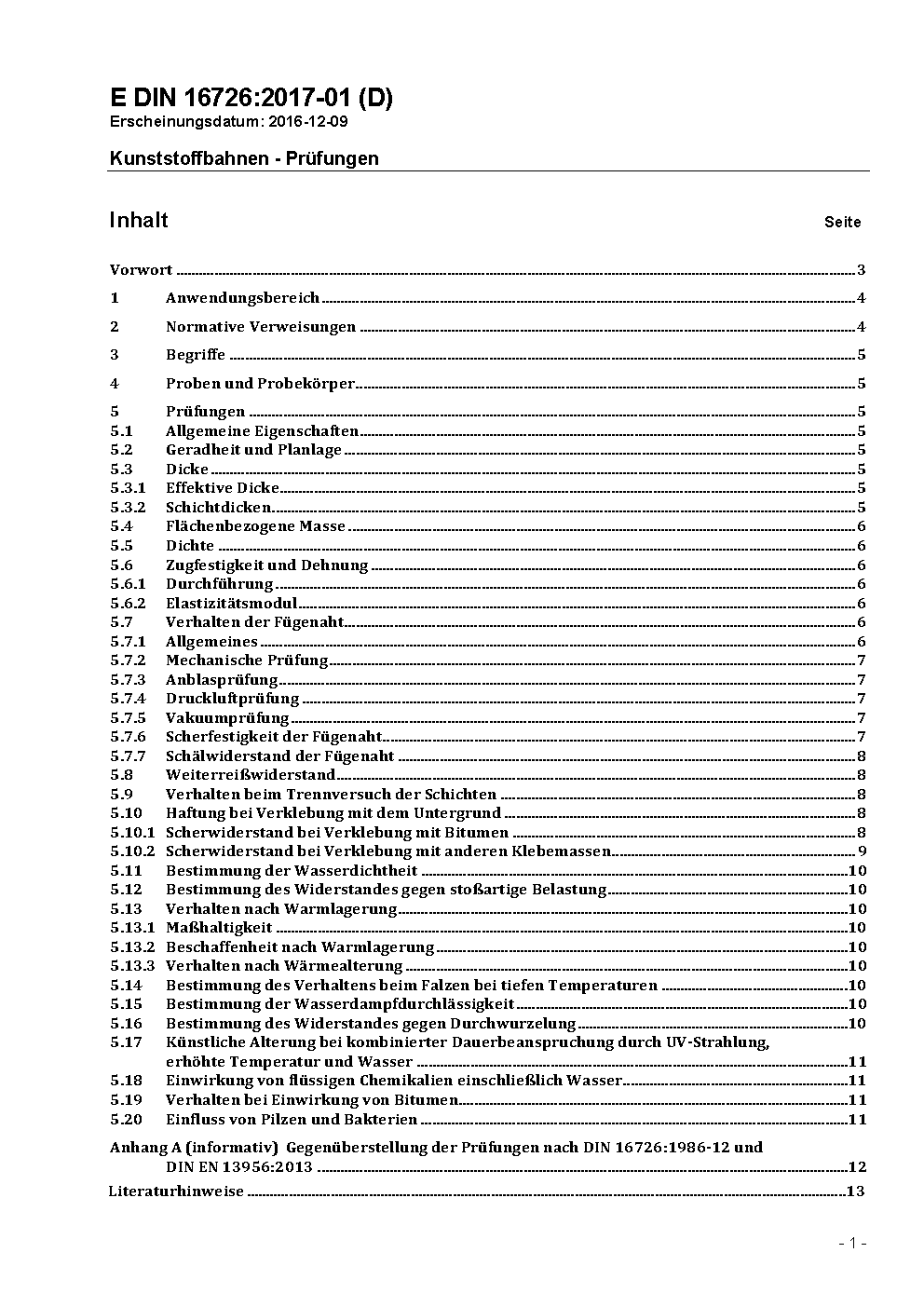 Kunststoffbahnen - Prüfungen
