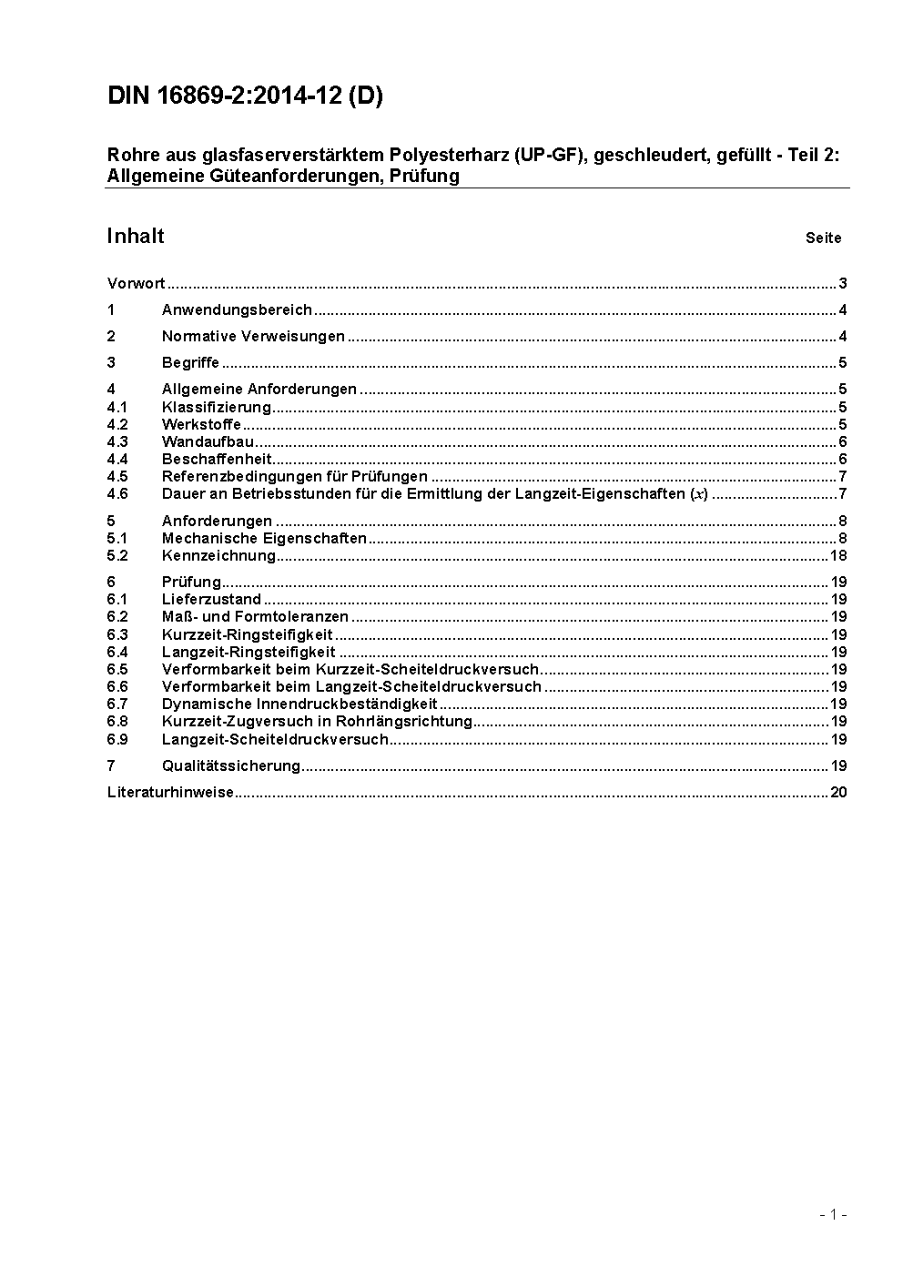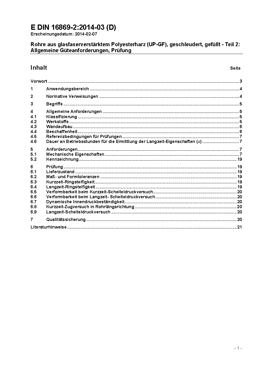 Rohre aus glasfaserverstärktem Polyesterharz (UP-GF), geschleudert, gefüllt - Teil 2: Allgemeine Güteanforderungen, Prüfung