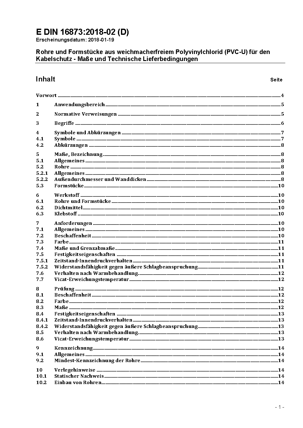 Rohre und Formstücke aus weichmacherfreiem Polyvinylchlorid (PVC-U) für den Kabelschutz - Maße und Technische Lieferbedingungen