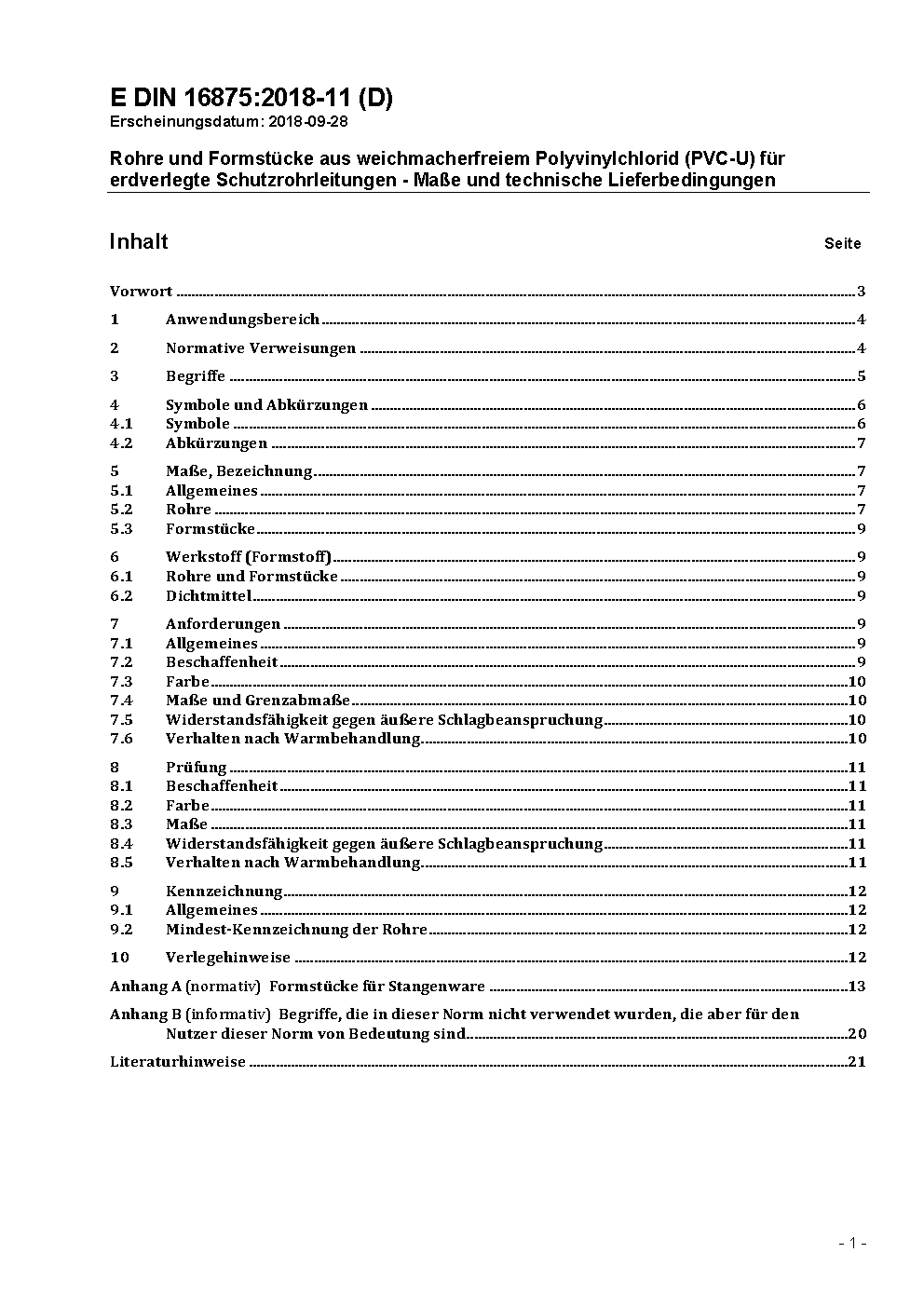 Rohre und Formstücke aus weichmacherfreiem Polyvinylchlorid (PVC-U) für erdverlegte Schutzrohrleitungen - Maße und technische Lieferbedingungen